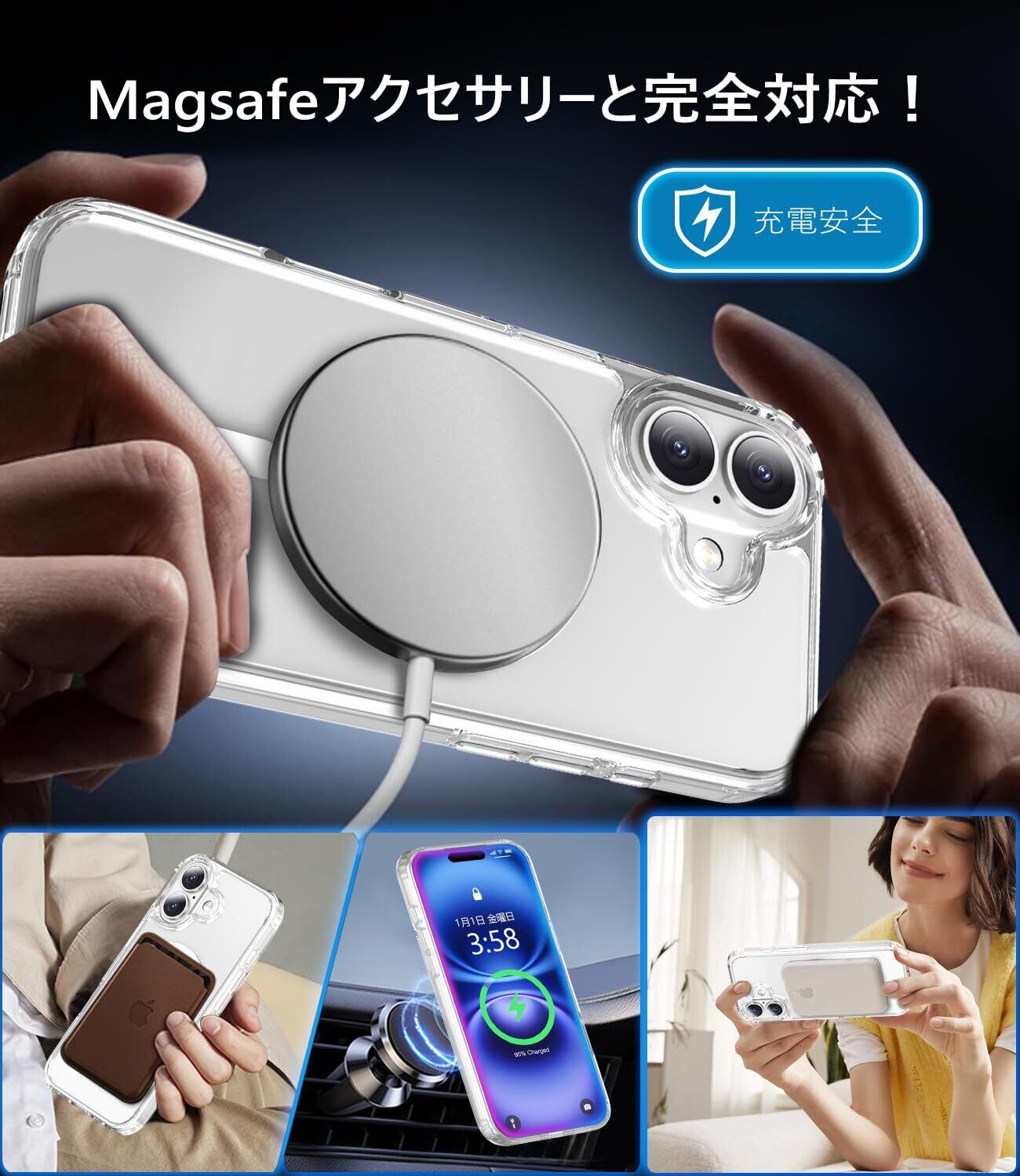 MINIKA iPhone 16 用 ケース Magsafe 対応 スマホケース いPhone 16 ケース クリア 米軍MIL規格 頑丈 耐衝撃 指紋防止 黄変防止 マグセーフ マグネット搭載 ワイヤレス充電 アイフォン 16 アイホン 16 スマホ カバー (クリスタル・クリア)
