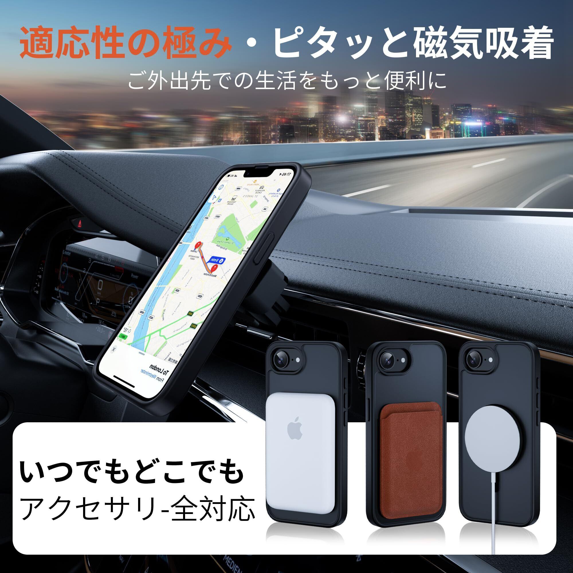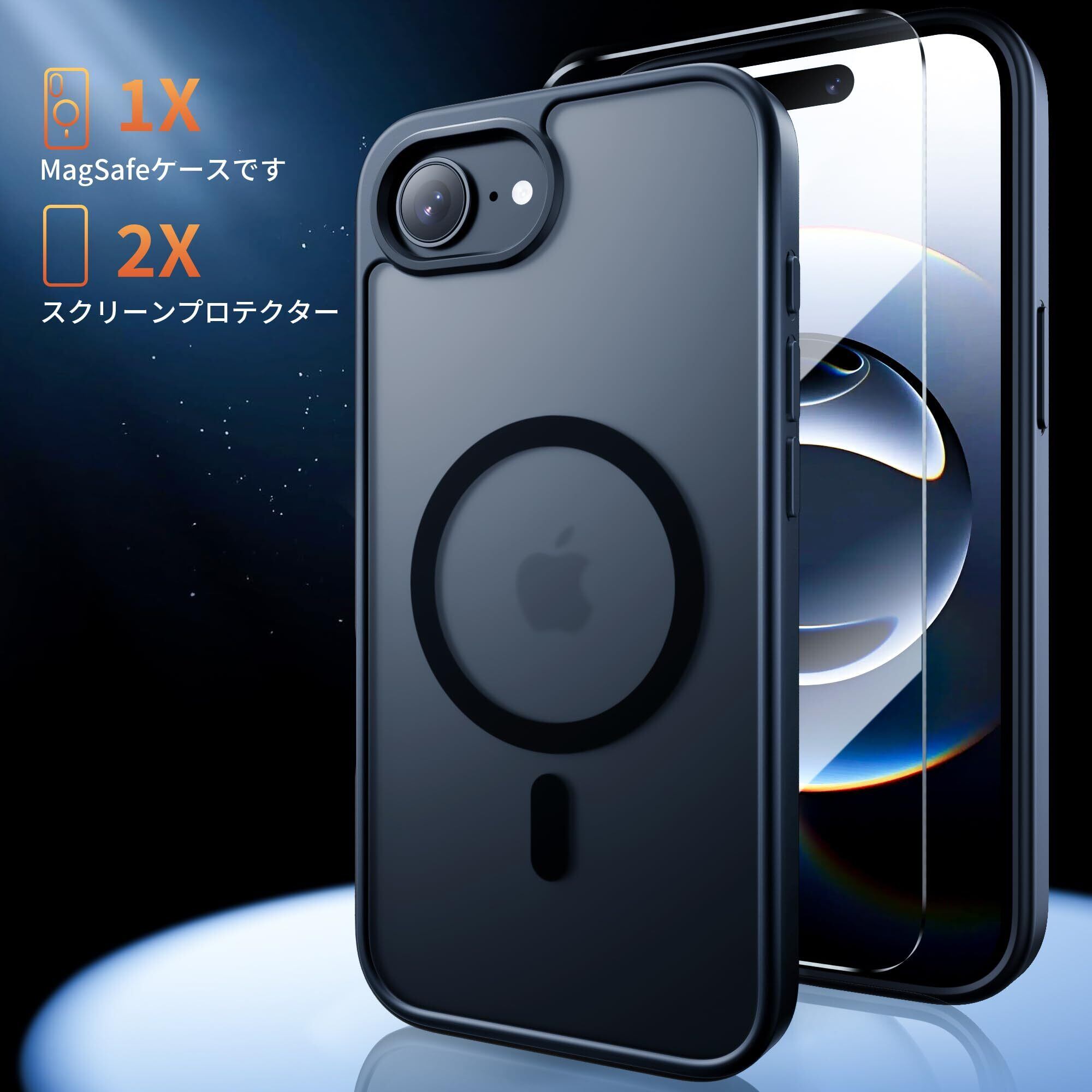 【新春セール】iPhone 16e 用 ケース 2025【強化フィルム2枚付き】Magsafe対応・米軍規格 いphone16e ケース 半透明 耐衝撃 指紋防止 滑り止め マグネット搭載 ワイヤレス充電 耐久性 全面保護 黄ばみなし あいほん16eスマホケース 6.1インチ用,ブラック