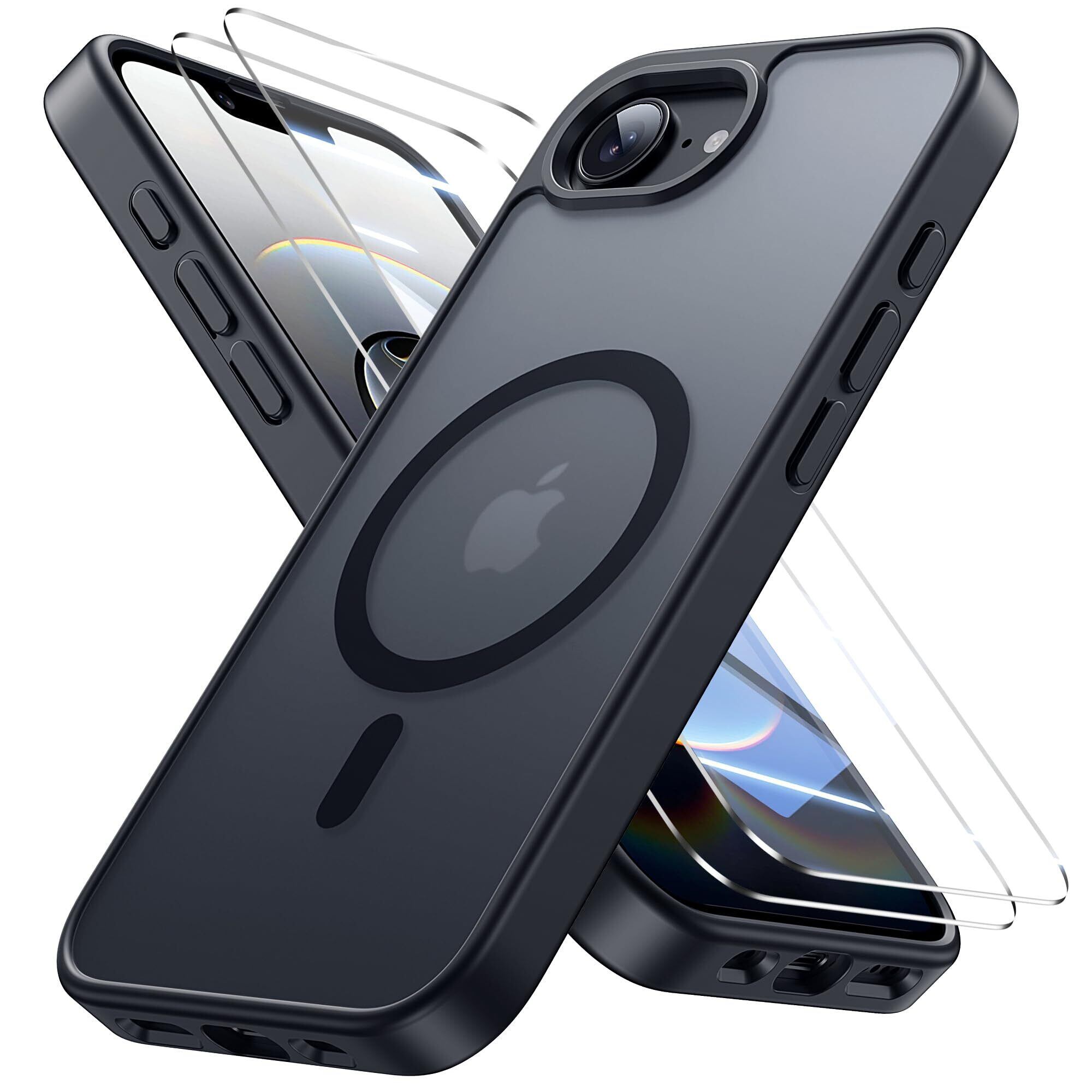 iPhone 16e 用 ケース 2025【強化フィルム2枚付き】Magsafe対応・米軍規格 いphone16e ケース 半透明 耐衝撃 指紋防止 滑り止め マグネット搭載 ワイヤレス充電 耐久性 全面保護 黄ばみなし あいほん16eスマホケース 6.1インチ用,ブラック