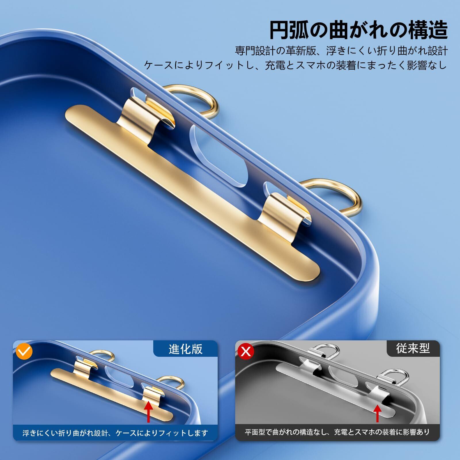 スマホ ストラップホルダー 2口 ダブルリング 極薄0.4mm ステンレス製 携帯ストラップホルダー 薄型 充電干渉なし 丈夫 落下紛失防止 iPhone対応 スマホアクセサリー (シルバー)