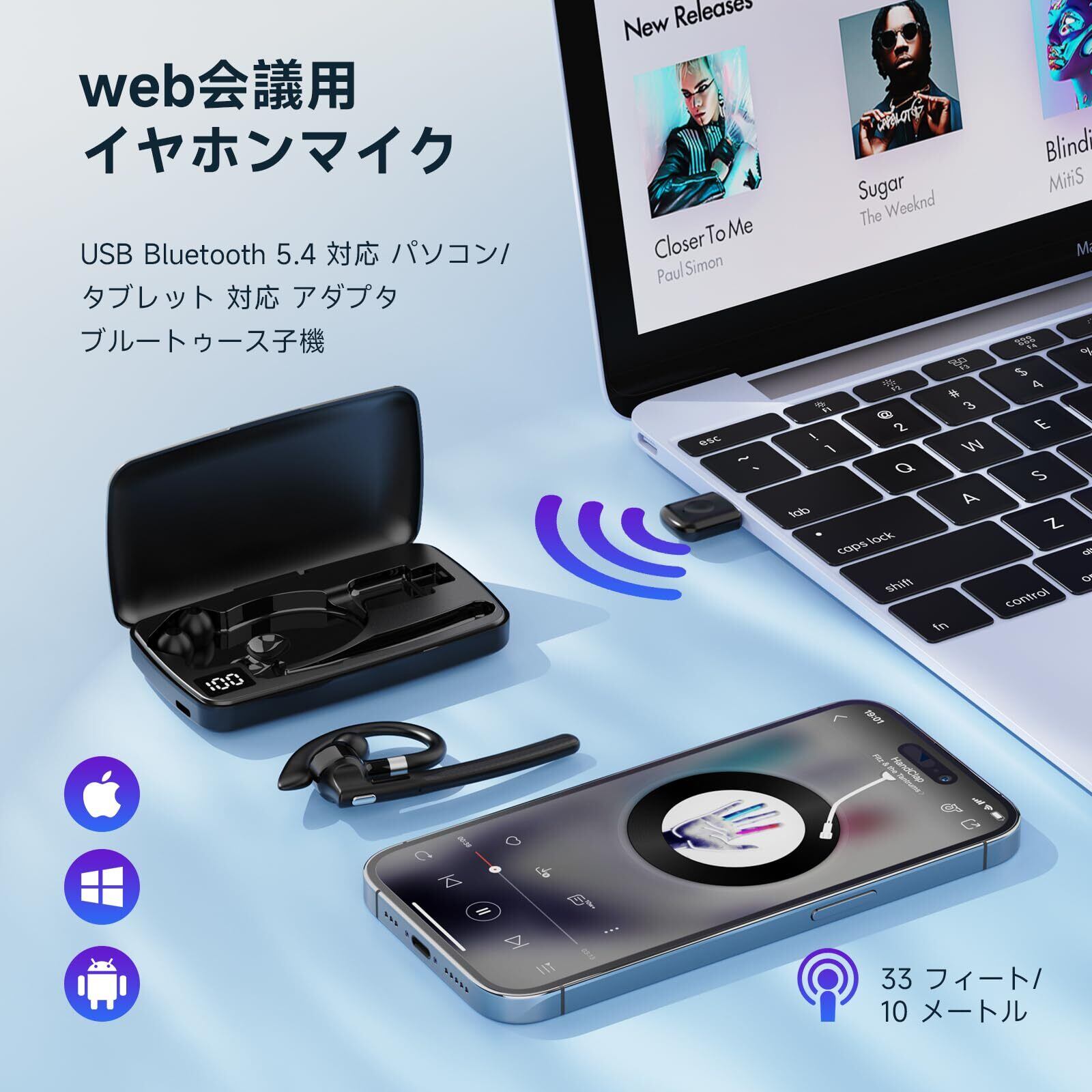 web会議用イヤホンマイク 搭載USB Bluetooth 5.4 対応 パソコン/タブレット 対応 アダプタ ブルートゥース子機