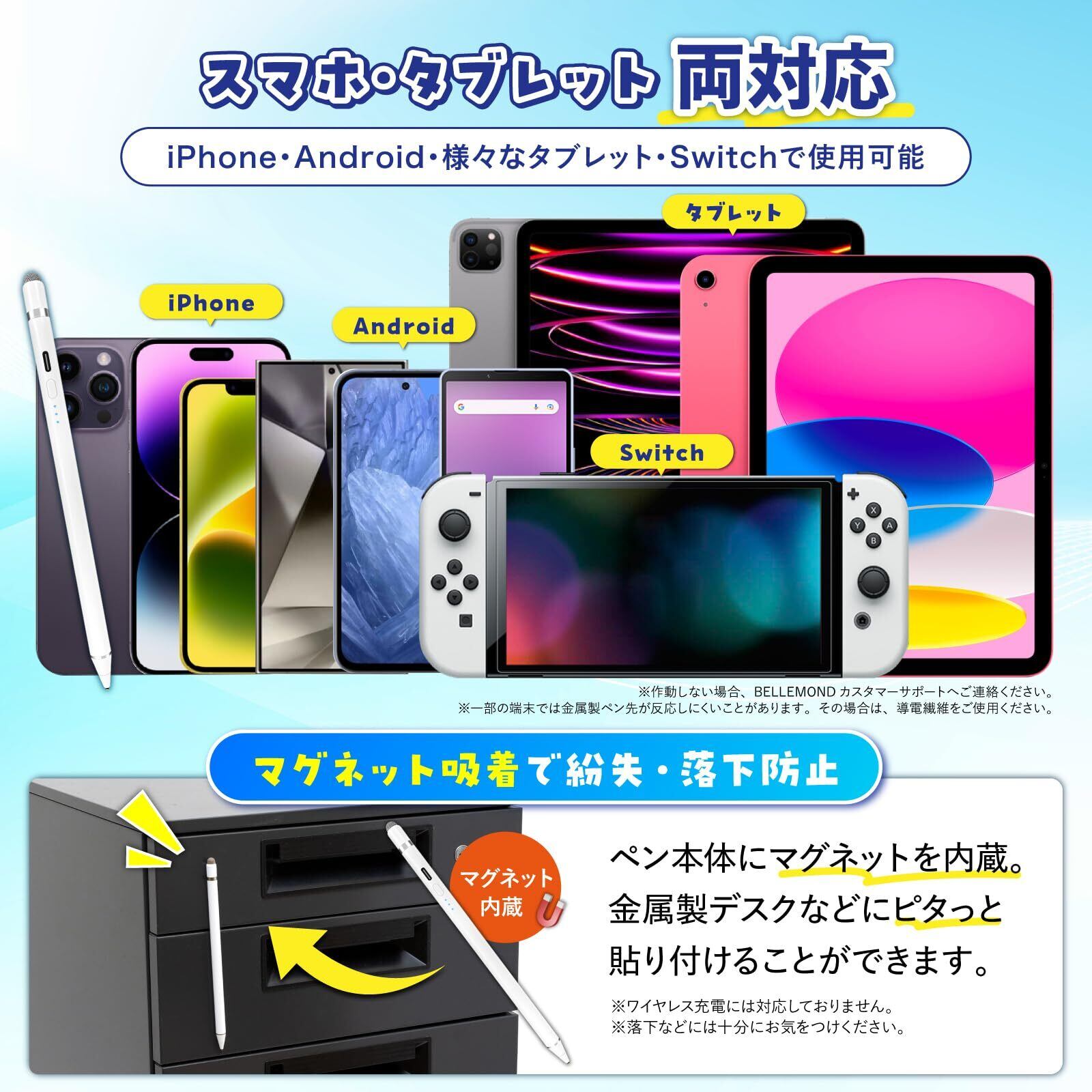 【ご購入前に、必ずご確認ください】:当商品は汎用タイプのタッチペンですが、全ての端末・アプリに対応しているわけではありません。あらかじめご了承ください。本製品を使用して起きた機器の破損やデータの損失などについては一切の責任を負いかねます。その他の注意事項は、ページ下部の商品紹介コンテンツ・商品パッケージ裏面をご確認ください。【ベルモンドについて】:ベルモンドは福岡県に本社を置くガジェットブランドです。もし商品に初期不良などありましたら迅速に対応いたします。
