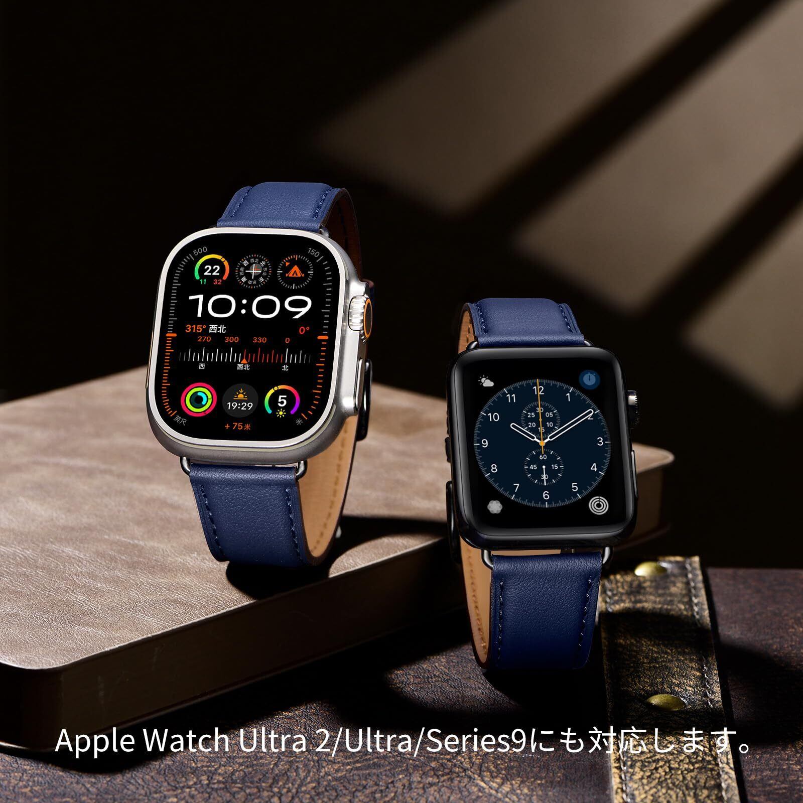 コンパチブル アップルウォッチ バンド 革 46mm 42mm 44mm 45mm 49mm 40mm 41mm 38mm コンパチブル Apple Watch バンド 本革 レザー ビジネス 男女兼用 コンパチブル iWatch SE3/SE2/SE/Series11/10/9/8/7/6/5/4/3/2/1に対応(ダークブルー・ブラック)