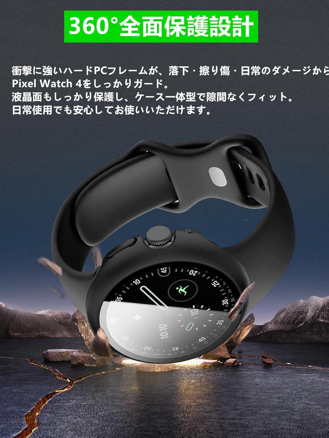 【高品質素材】— 耐久性のあるマットハードPCバンパーを使用し、超薄型で指紋がつきにくく、より耐摩耗性があり、塗装も剥げません。9H硬度のスクリーンプロテクターを内蔵し、Pixel Watch 4 41mmをあらゆる角度から保護し、破損や傷を防ぎます。