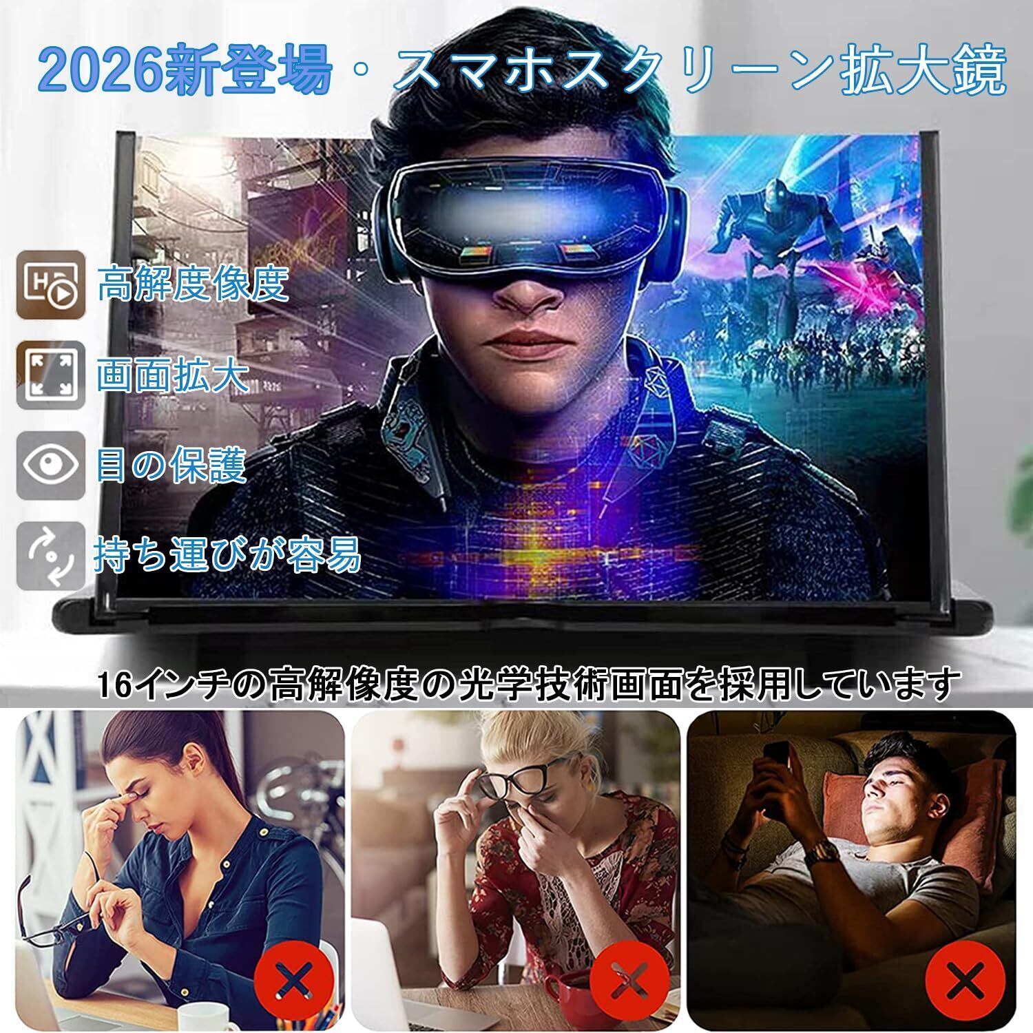 【数量限定】スクリーンアンプ 16インチ [2026アップグレード版·大画面満喫] スマホ拡大鏡スタンド HD 5倍 3D 携帯 スクリーン拡大器 目の保護 疲労軽減 スマホ画面拡大 スタンド折り畳み式 軽量 携帯便利 多機能調節可能 全部スマートフォンに適用(ブラック1)