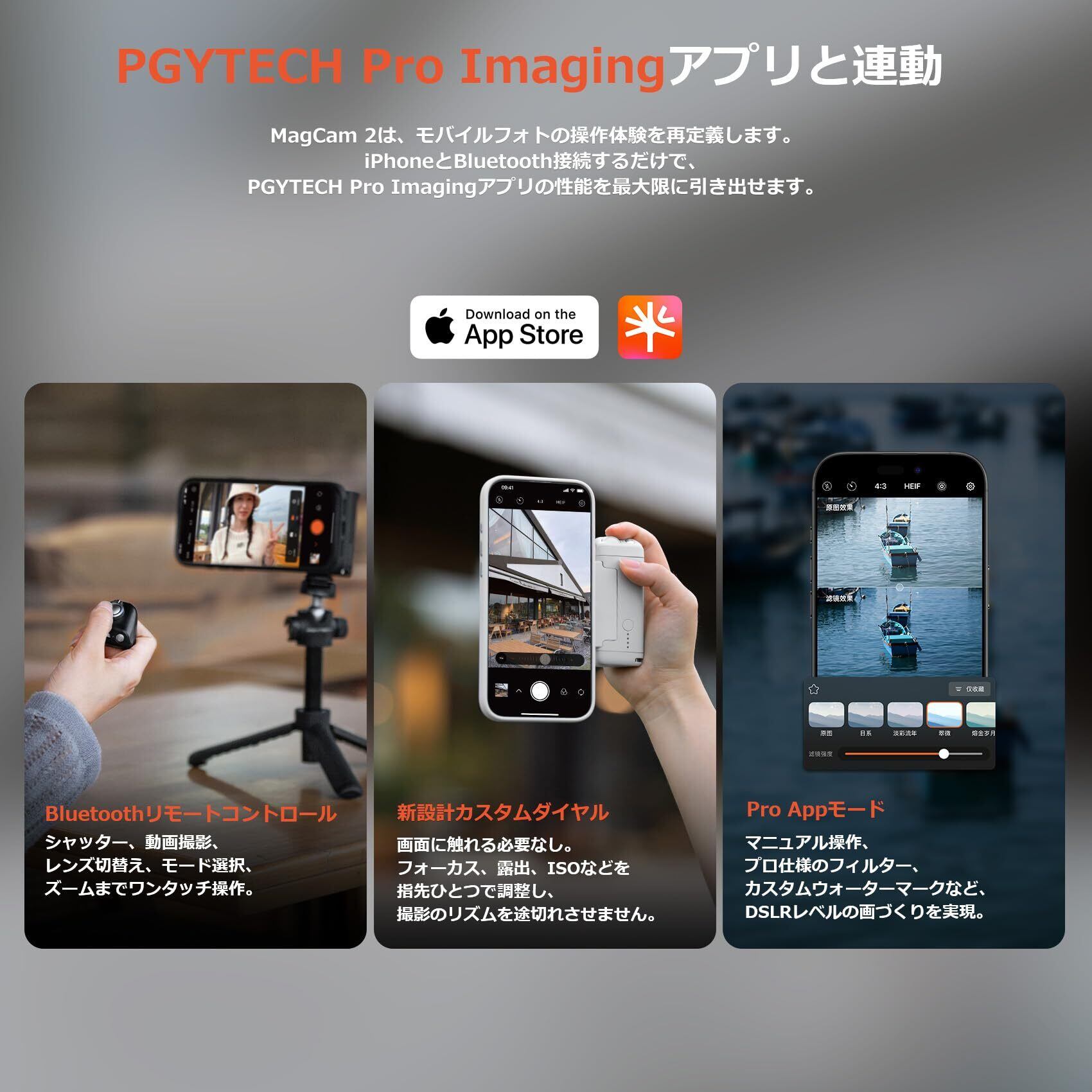 【アプリ連携と対応機種の拡張で、より幅広い互換性】 MagCam 2はPGYTECH専用アプリとの連携を強化し、プロ向け撮影設定へのクイックアクセスや操作効率を向上。iPhoneではアプリ連携による高度な撮影制御が可能で、Android端末でも標準カメラアプリと連携して快適に使用できます。対応機種とシステム互換性が拡張され、従来モデルよりも幅広いスマートフォンで安定した撮影体験を実現します。