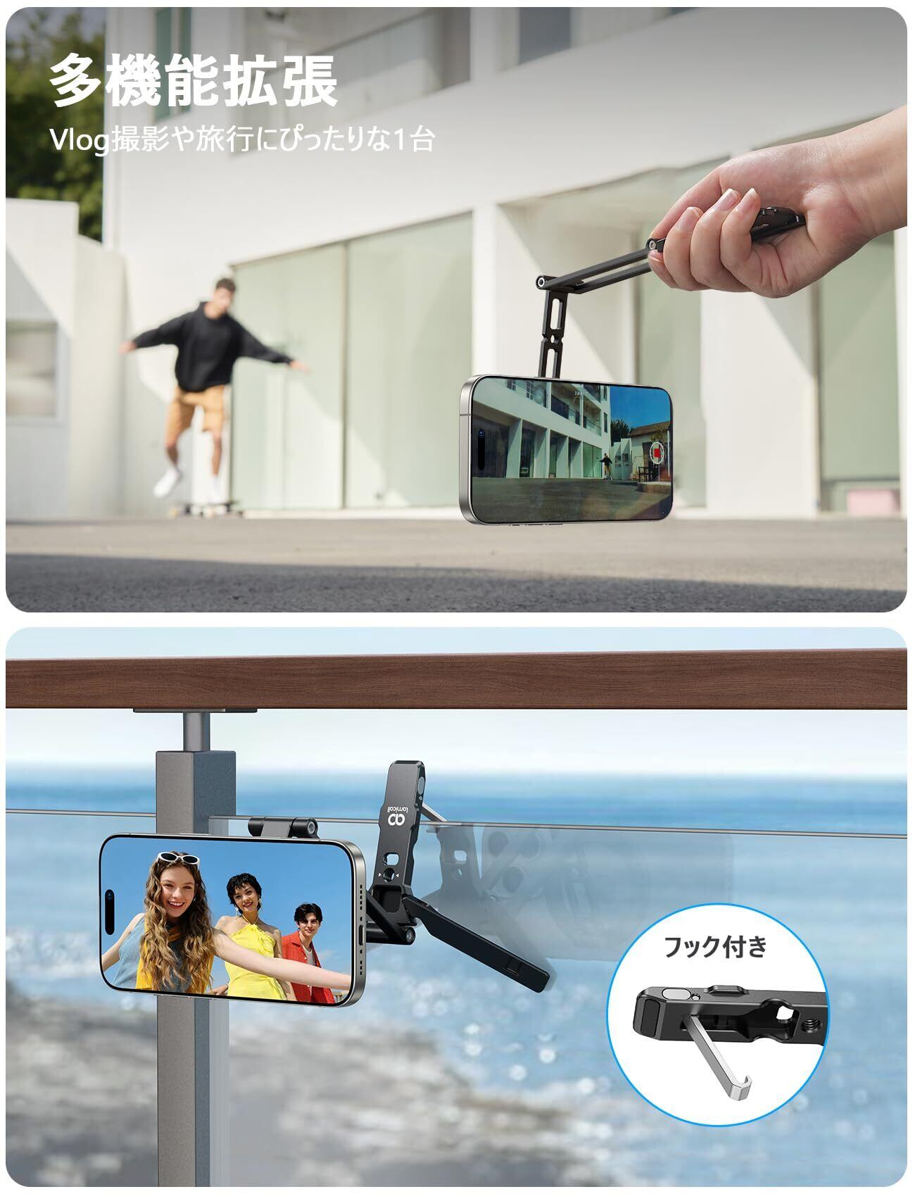 【フック付き】 Magsafe対応 スマホ 三脚 スタンド 卓上 Lamicall: 折り畳み ミニ 自撮り ホルダー アルミ 撮影 マグネット 多機能 携帯 磁石 固定 角度 360度 回転 アイホン 縦 横 机 置き 持ち運び 軽量 コンパクト 旅行 iPhone 17 Air 16e 16 15 14 plus pro max 13 12 mini Xperia android などに 黒