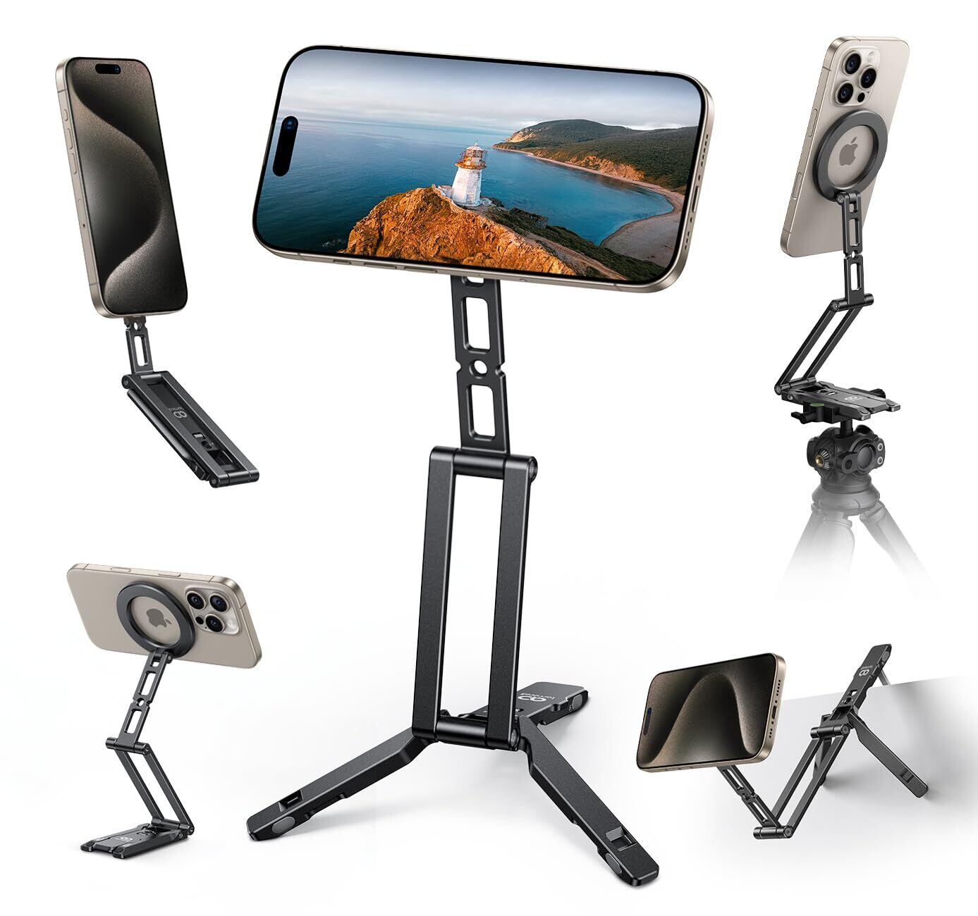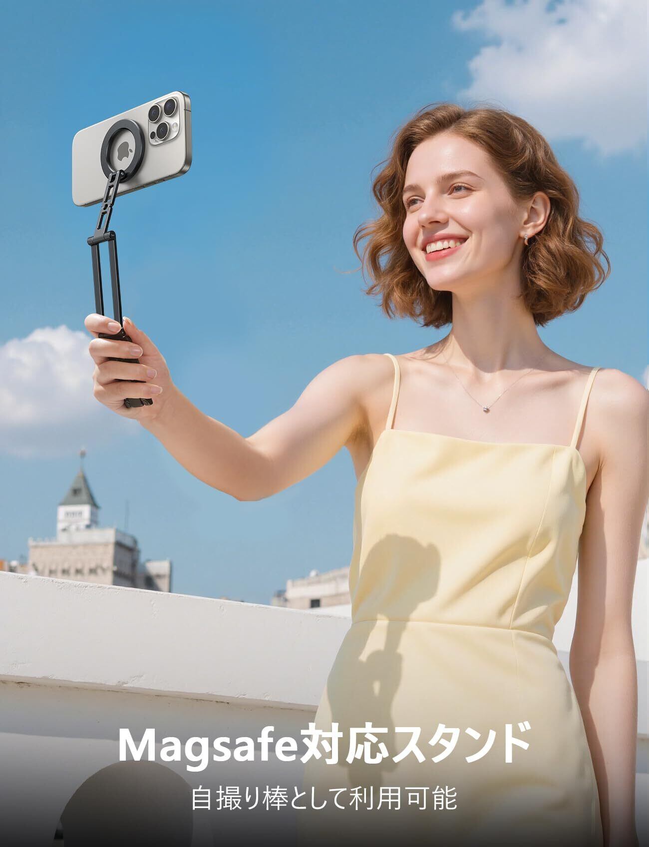 【特価商品】【フック付き】 Magsafe対応 スマホ 三脚 スタンド 卓上 Lamicall: 折り畳み ミニ 自撮り ホルダー アルミ 撮影 マグネット 多機能 携帯 磁石 固定 角度 360度 回転 アイホン 縦 横 机 置き 持ち運び 軽量 コンパクト 旅行 iPhone 17 Air 16e 16 15 14 plus pro max 13 12 mini Xperia android などに 黒