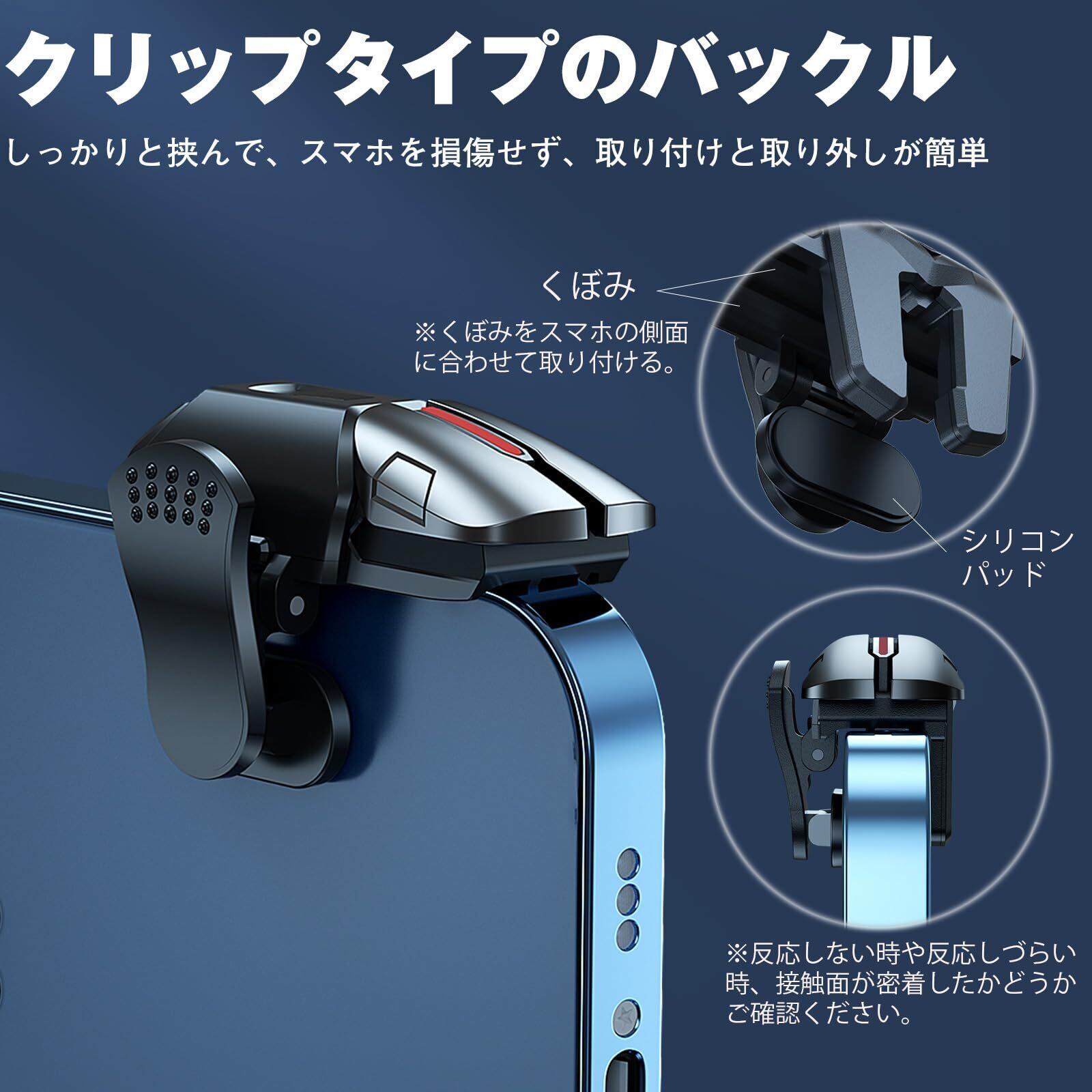 【在庫処分】【4つボタン】 スマホゲーム コントローラー 一回押しダブルコントロール モバイルゲーミング用 合金製黒軸メカニカル 射撃ボタン 「CODM対応不可」 高速精確な射撃 iPhone/Android シューティングゲーム対応