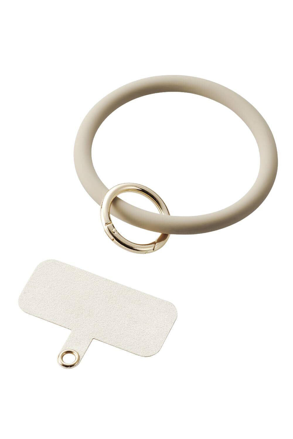シンプルなラウンドデザインの、手首に通して使えるリングタイプのスマホハンドストラップです。