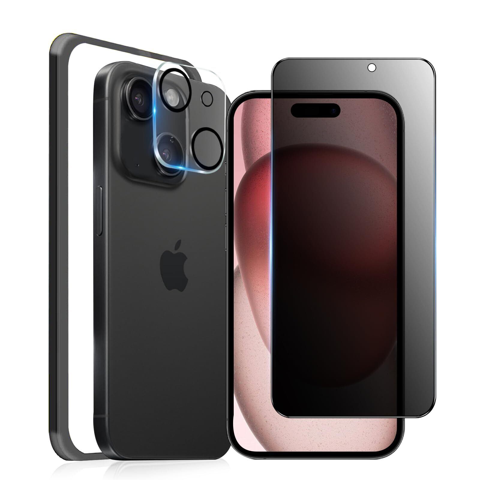 MINIKA 180度 覗き見防止フィルム iPhone 15 用の ガラスフィルム のぞき見防止 いPhone15 保護フィルム 覗き見防止 180° アイフォン15 フィルム 左右 覗き見 【 浮かない/ガイド枠付き 】