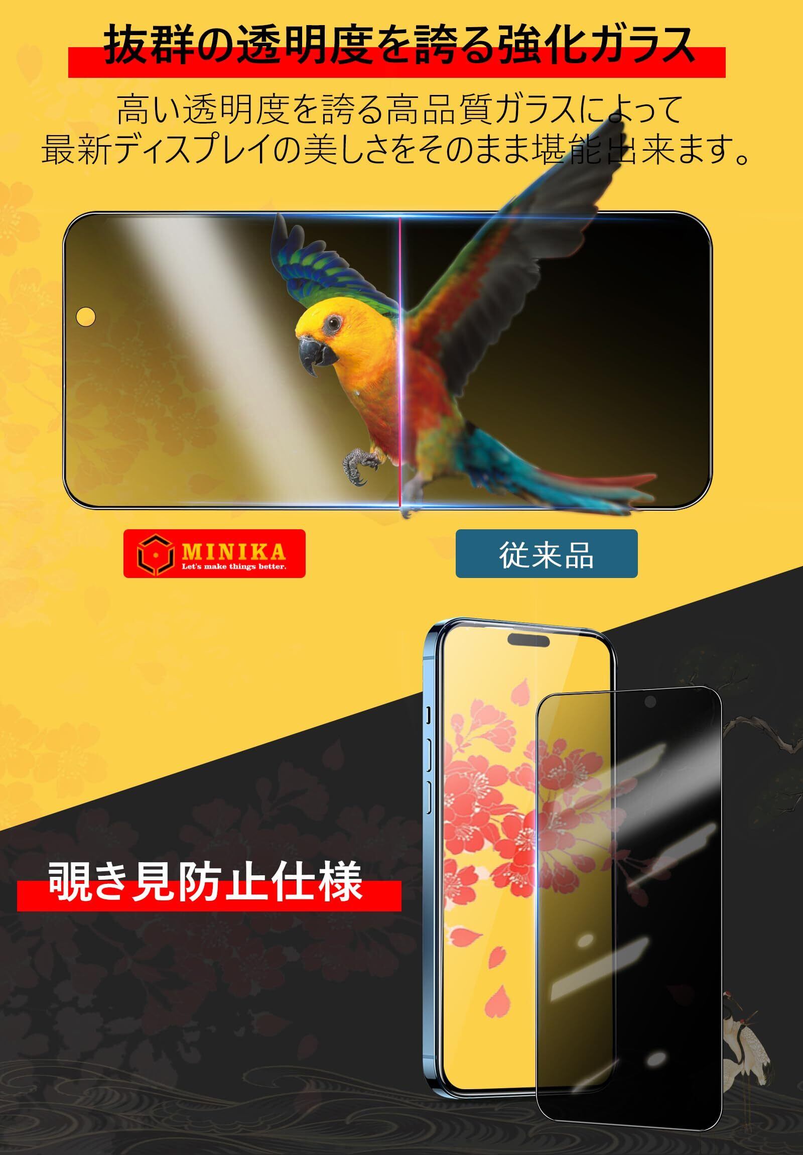【人気商品】MINIKA 180度 覗き見防止フィルム iPhone 15 用の ガラスフィルム のぞき見防止 いPhone15 保護フィルム 覗き見防止 180° アイフォン15 フィルム 左右 覗き見 【 浮かない/ガイド枠付き 】
