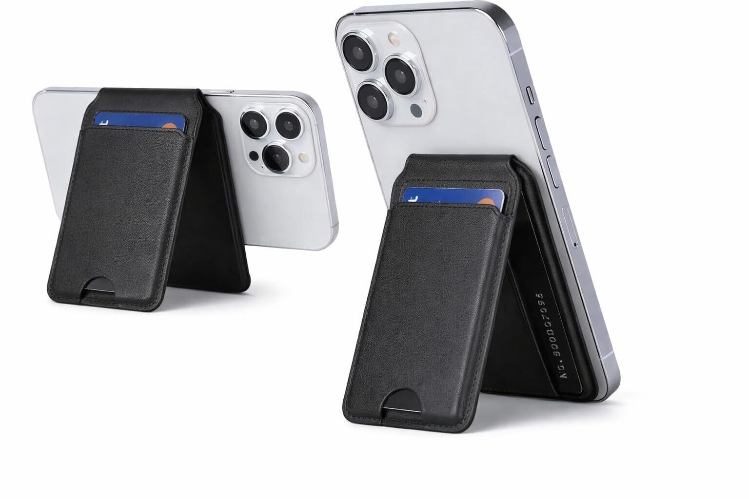 [Popoluku] 折りたたみマグネット Magsafe ウォレットスタンド 薄型 ヴィーガンレザー 二つ折りスタンド 6枚カードホルダー フロントNFCパススルー iPhone 17/16/15/14/13/12用調節可能なカード収納(ブラック)
