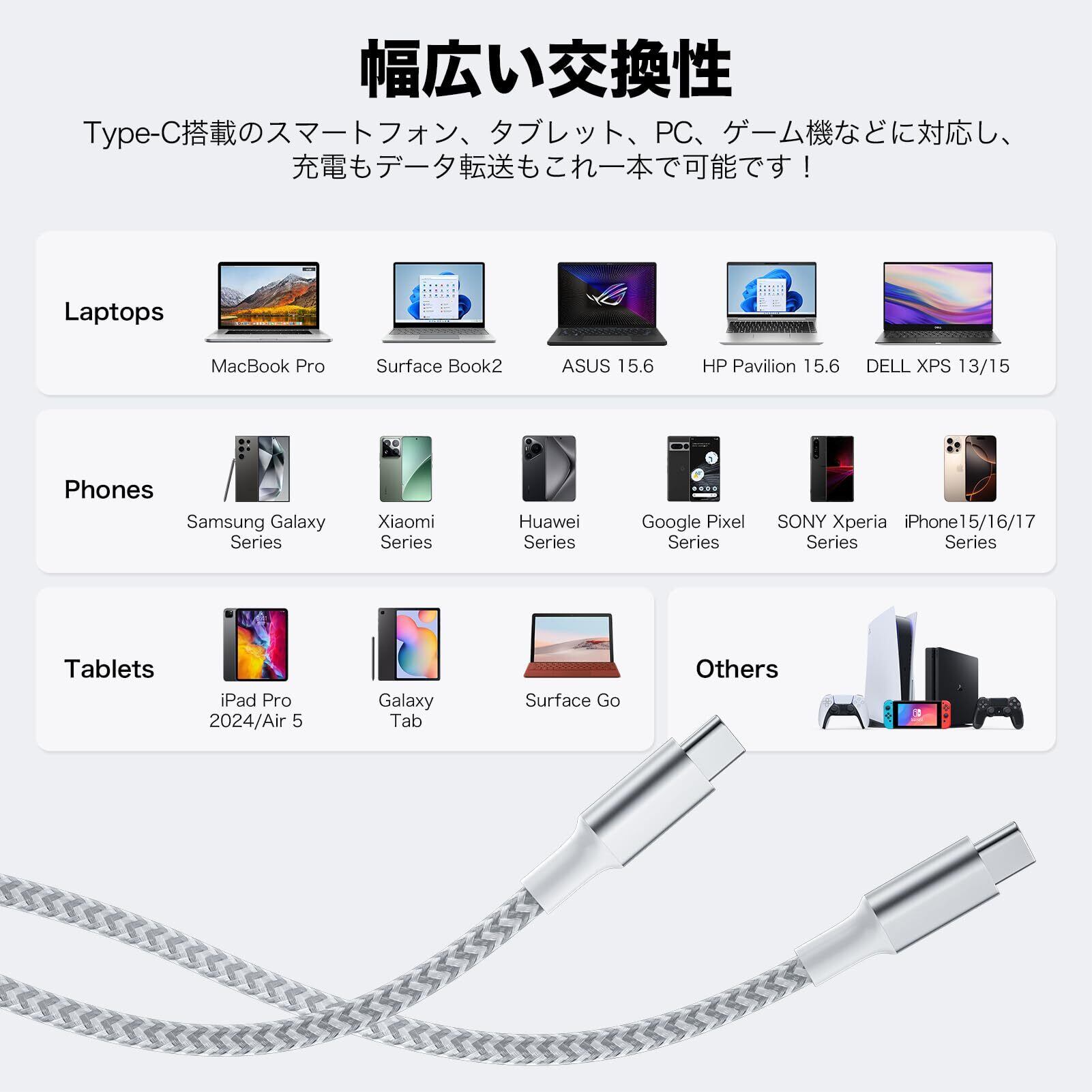 【新着商品】タイプc ケーブル usb c ケーブル 【1m+1m+2m+2m 4本 60W急速充電】PD3.0対応 データ転送 断線防止 高耐久ナイロン編み PD対応 iPhone 17/16/15 超高速充電 ipad air5/mini6 iPad Pro11/Macbook/Android/Nintendo/Pixel7a/Galaxy/Sony 等Type-C各種対応