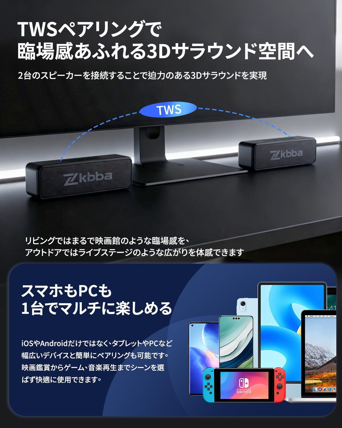 Bluetooth スピーカー ワイヤレススピーカー【2026年アップグレード】Bluetooth5.3 完全ワイヤレスステレオ対応 TWS機能 Hi-Fi音質 大音量 IPX7防水 Type-C充電 長時間再生 マイク内蔵 ハンズフリー通話 2台ペアリング対応 コンパクト ポータブルスピーカー お風呂 アウトドア キャンプ 車載 日本語説明書付き