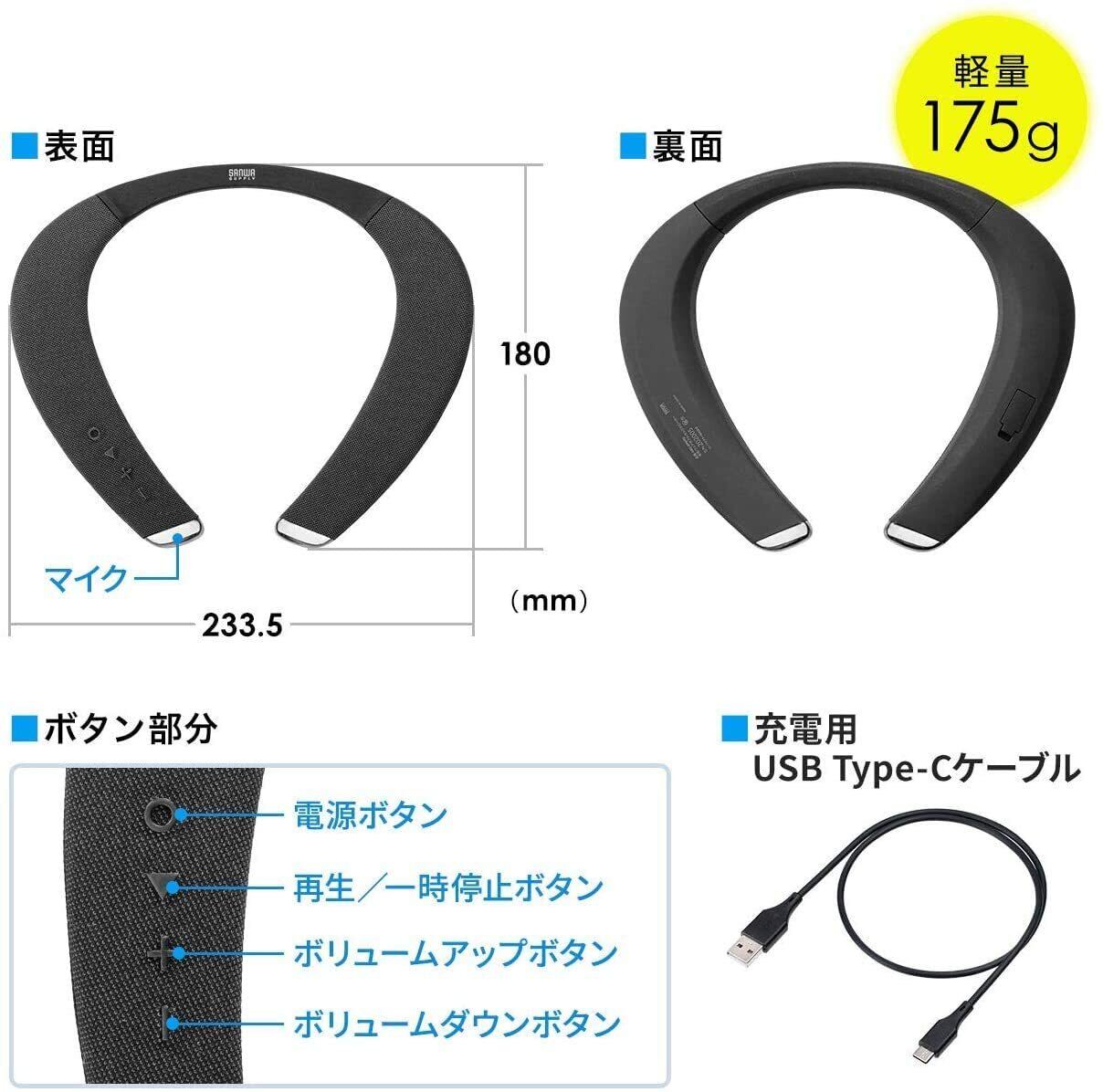 サンワダイレクト ネックスピーカー Bluetooth apt-X LL対応 低遅延 テレビ向け 連続11時間再生 防水IPX5 通話対応 Zoom/Skype対応 400-SP090