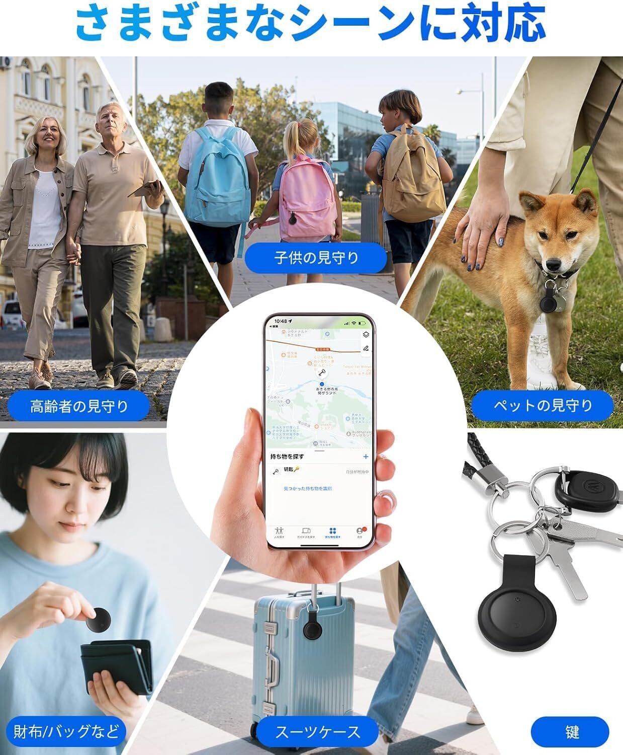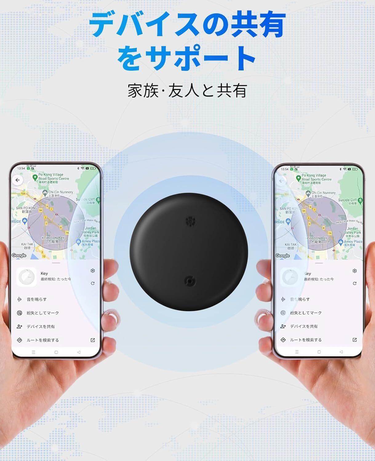 【アイテムを共有】Google「検索ハブ」アプリを使って、他の人とアイテムを共有し、地図上でリアルタイムにその位置を確認してもらうことができます。家族や友人と共有、リアルタイムで場所を確認でき、見守りgpsとして高齢者・子供・犬や猫の位置確認や、紛失防止タグとして鍵や荷物の管理など、幅広く活躍します。 最大32個まで接続可能、家族全員の鍵や子どもの持ち物に取り付けて、防犯対策としても活用できます。