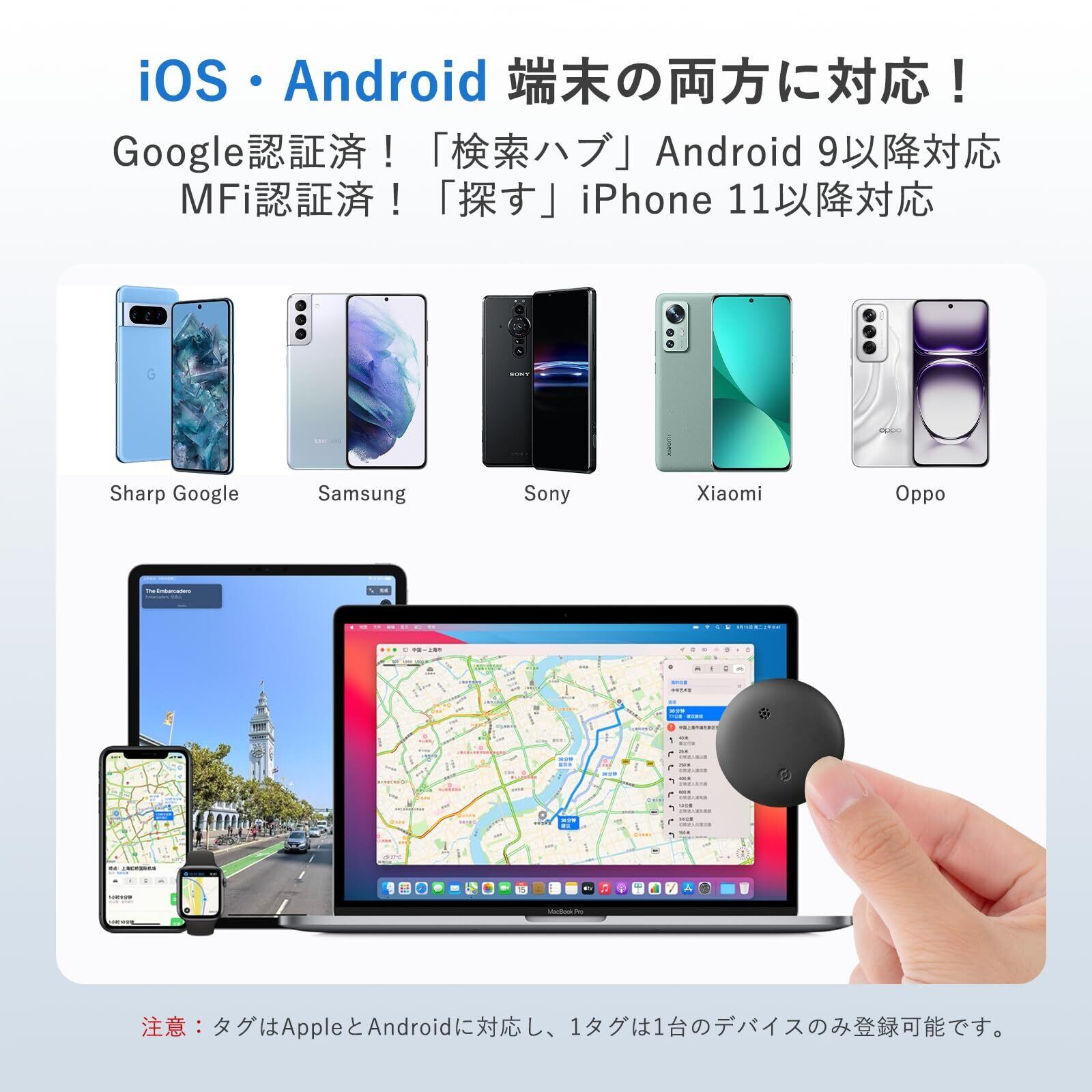 ②【Apple × Google公式認証&技適無線認証】最強の安心airtag登場!公式ダブル認証済み:iOS「探す」とAndroid「Google Find Hub」アプリ、両方の純正アプリに対応!データの安全性・プライバシー保護は業界トップクラス。非公式アプリ不要で純正アプリによるスムーズな操作と高精度測位を実現!日本Giteki無線認証(認証コード:R 210-233144 型番:S15)取得:合法周波数帯を使用し、日本の技術基準に完全適合。無線通信の安定性と安全性をし、屋内外どこでも途切れない接続を実現!信号干渉の心配なく、法令遵守で安心の正規品です。【Apple × Google公式認証と無線認証の効果】 純正アプリ対応で操作はシンプル&快適! Apple × Googleの最先端暗号化で位置情報を完全保護! 当社および第三者による個人情報の取得は一切なし。プライバシーがしっかり守られます。 Apple製品・主要Android機種との完全互換を。純正アプリ対応のairtagとして、スマートタグ選びに妥協しないあなたへ最高の信頼性と安全性をお届けします!【対応機種】iPhone、iPad、Google Pixel、Xiaomi、Samsung Galaxy、Sony Xperia、Sharp、Oppo、Rakutenなど、Android 9以降、iOS 14.5以降の端末に対応。️【注意】iPhoneとAndroid端末の同時接続は不可。AndroidではHUAWEI端末非対応。中国、イラン、北朝鮮など一部地域で利用制限あり。