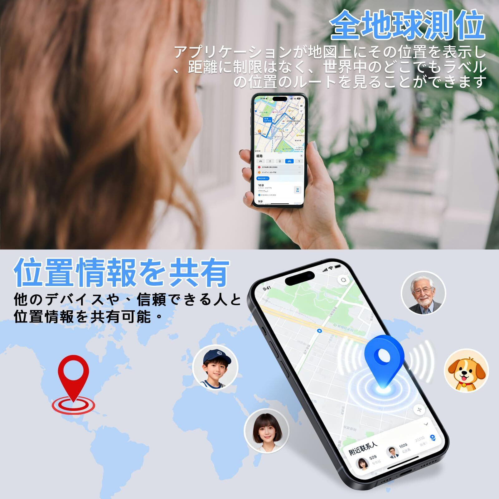 【長距離追跡】iPhone、iPad、Macデバイスの「探す」ネットワークを利用して。「探す」App連動・月額料金ゼロ 距離は無制限で、世界中のどこでも見つけることができます。 地図上でトラッカーの位置を確認し、近くの場所にナビゲートすることができます。 さらに、スマートトラッカーは、家族や友人とエアカードの位置を追跡することができるマルチ共有機能を持っています。