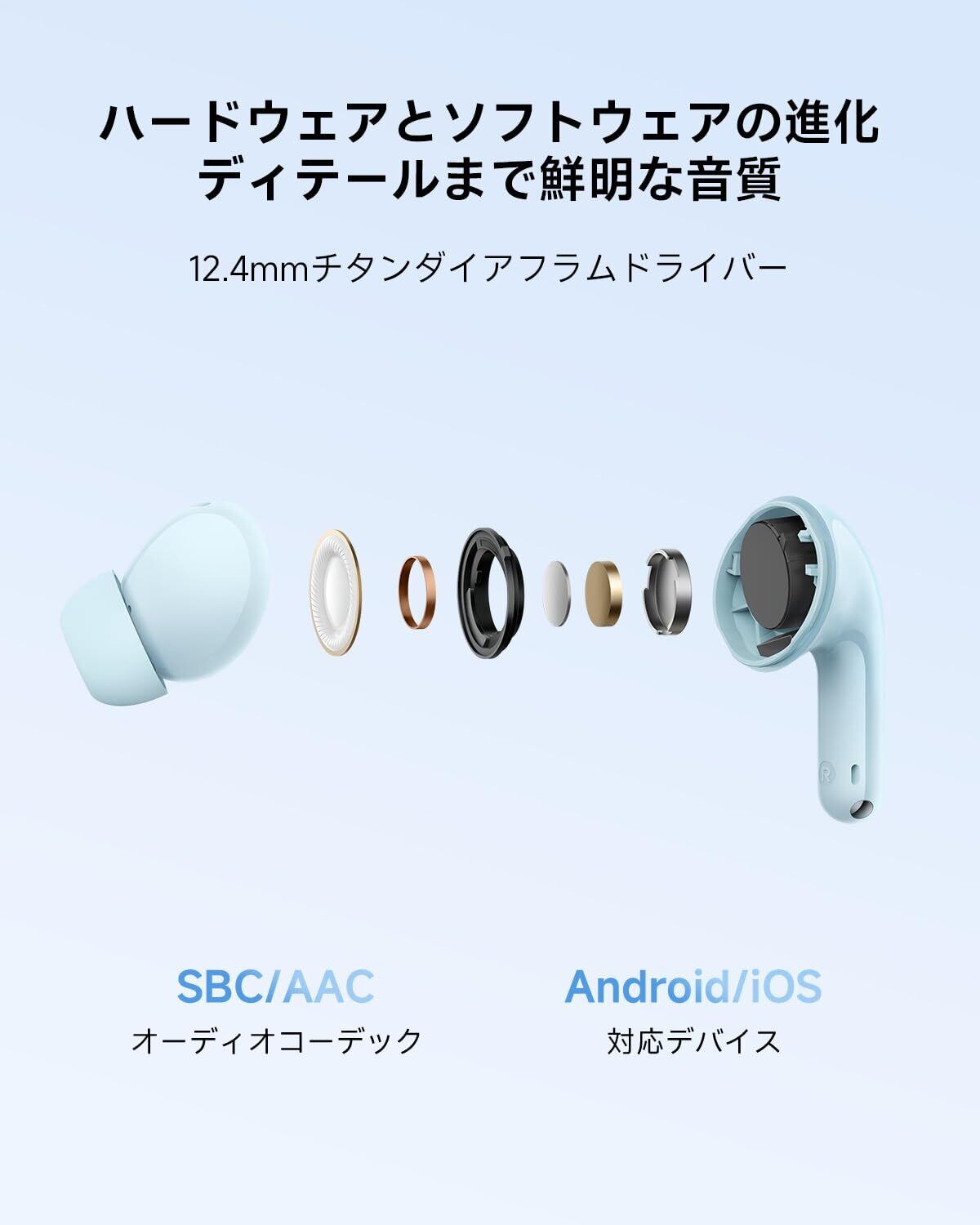 エントリー級ノイキャンTWSイヤホン。42 dB ANC · AI搭載デュアルマイクENC · 12.4mmチタンコートダイナミックドライバー。
