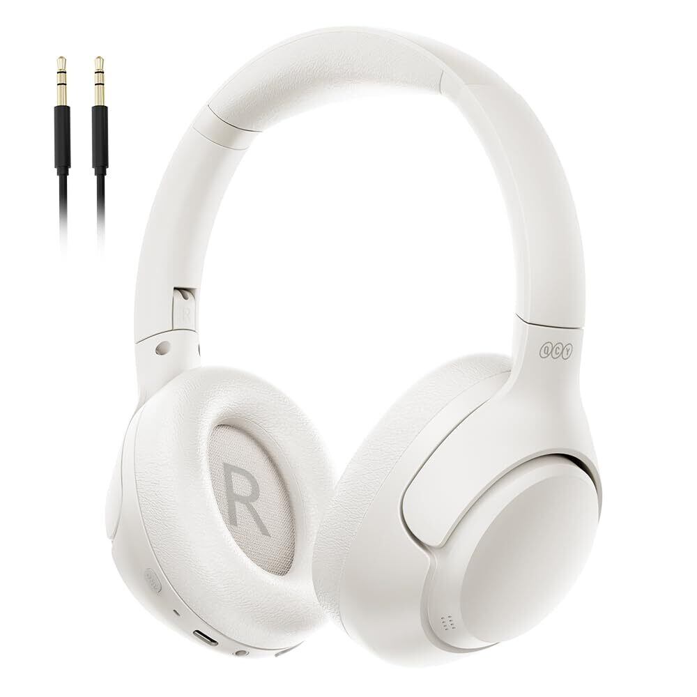 QCY H3 ヘッドホン ワイヤレスヘッドホン ノイズキャンセリング Bluetooth 5.3 ハイレゾ対応(AUX接続時) 43dBまでノイズ低減 有線 無線両用 最大60時間音楽再生 外音取り込み マイク内蔵 ハンズフリー通話 マルチポイント対応 快適装着 軽量 専用アプリ対応 ブルートゥース ヘッドホン ホワイト