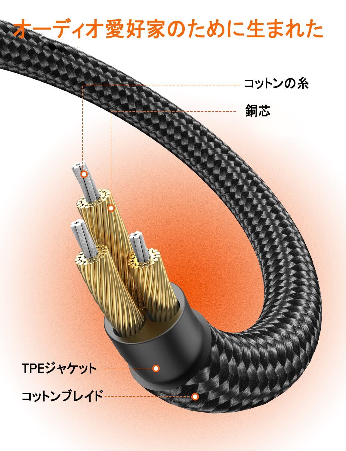 【耐久性と柔軟性】イヤホン 延長ケーブル 内部エナメル銅芯+TPE素材+綿の内芯で効果的にノイズを抑制し、外部の耐折綿編組で最大の導電性と耐久性を確保し、最適な信号伝達を実現します。 10,000回以上の屈曲試験により、外層がPVC製の一般的なオーディオケーブルと比較して数倍長持ちすることが確認されている綿編み構造のケーブルです。
