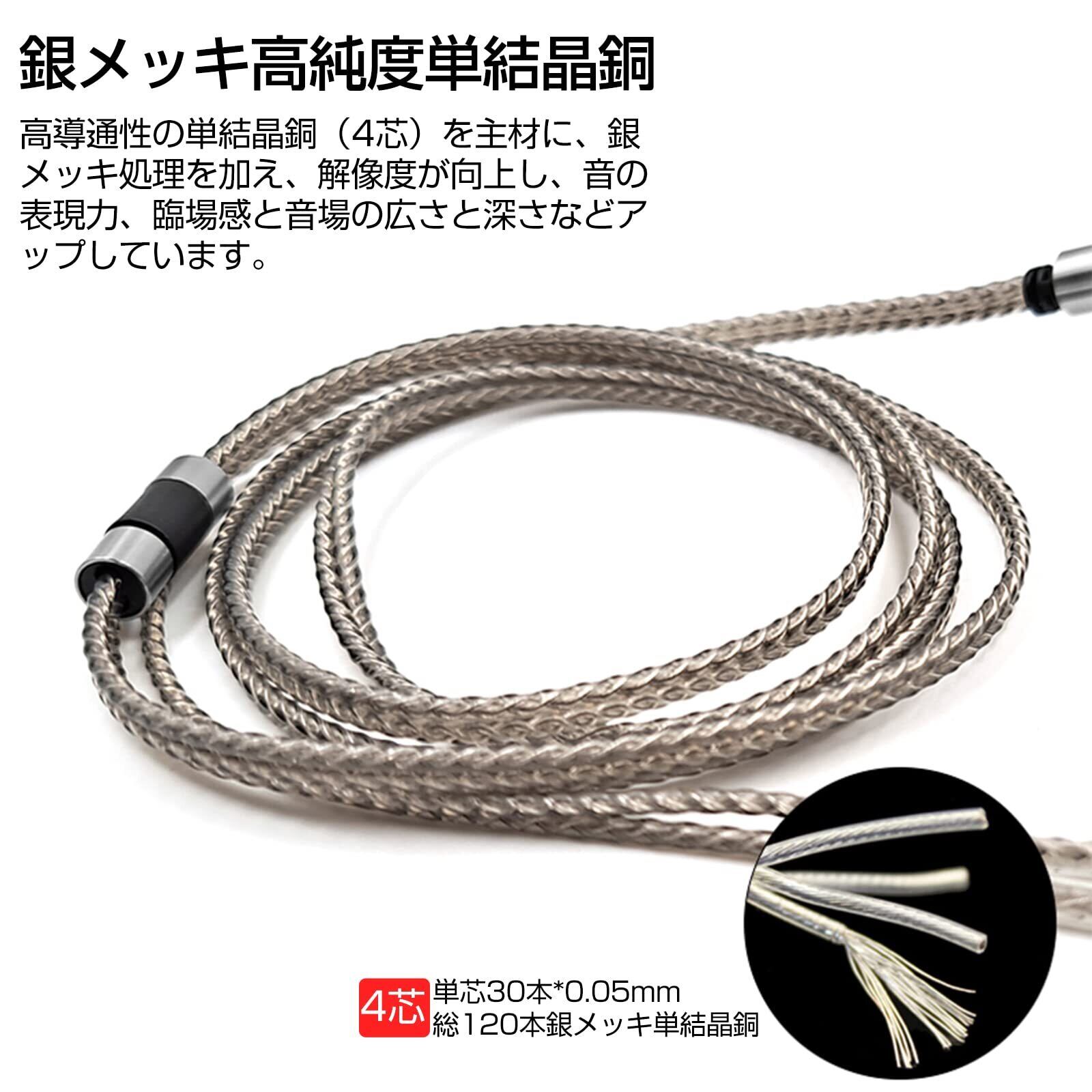 plus35 mmcxケーブル リケーブル イヤホンケーブル 3.5mm 銀メッキ 高純度単結晶銅 4芯 1.2m長さ JVC FX80/1200/FW001/002/003等イヤホンに適合