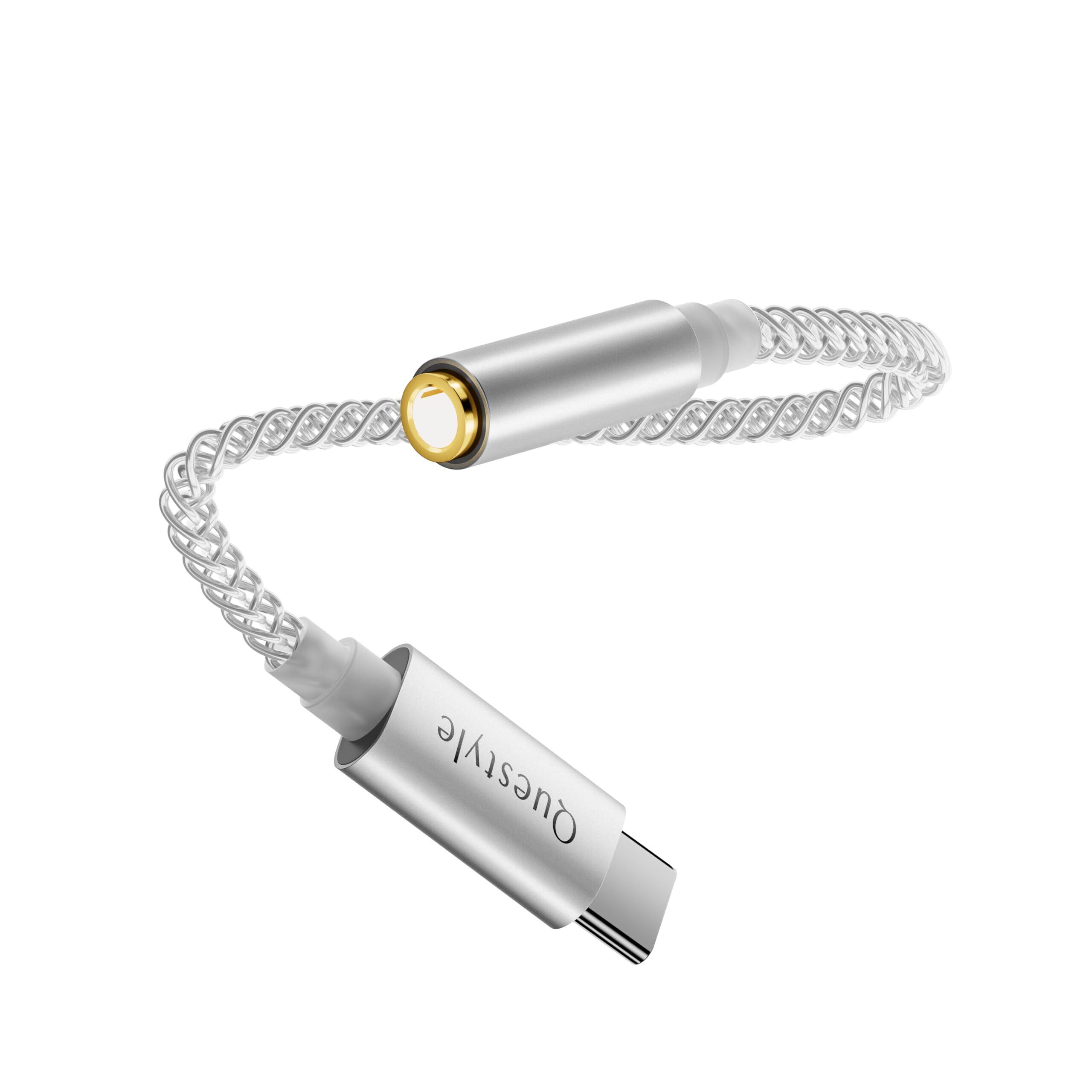 Questyle Qlink-C USB-C to 3.5mm ハイレゾ DAC アダプタ 32bit/384KHz OFC銀メッキ線(8芯)ケーブル USB C イヤホンジャック 変換 タイプc イヤホン変換アダプタ CX31993 DAC搭載アダプター iPhone17/16/15/iPad/MacBookタイプCデバイスに対応 (32bit/384KHz) オーディオ 変換 アダプター