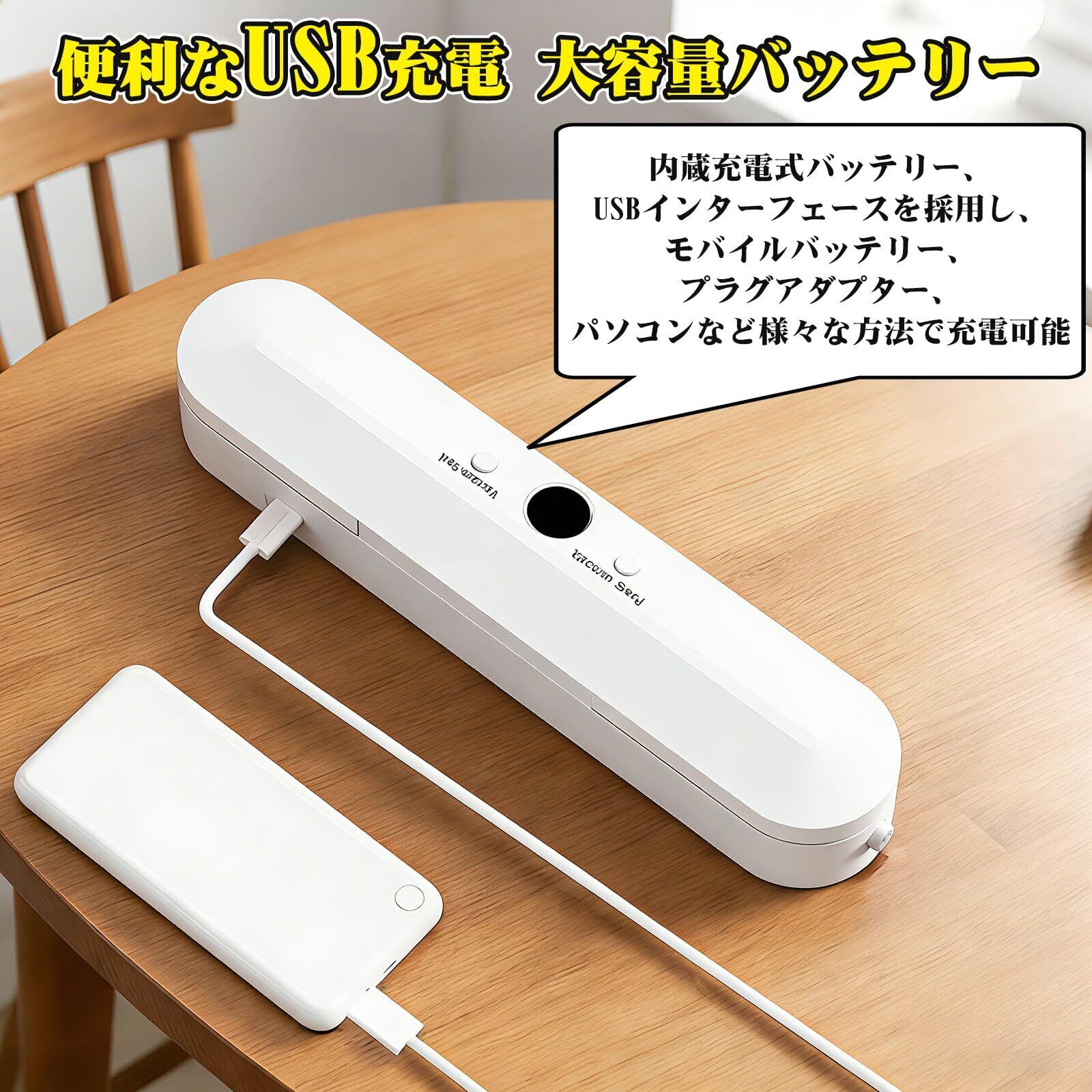 真空パック機 フードシーラー全自動 USB 式真空パック器 吸収力62kPa 30cm延長圧着口 家庭用 多機能 高耐久性 脱気&シール 家庭用 業務用 簡単操作 日本語説明書付き専用袋20*25cm5枚+専用袋20*12cm5枚 (白色)