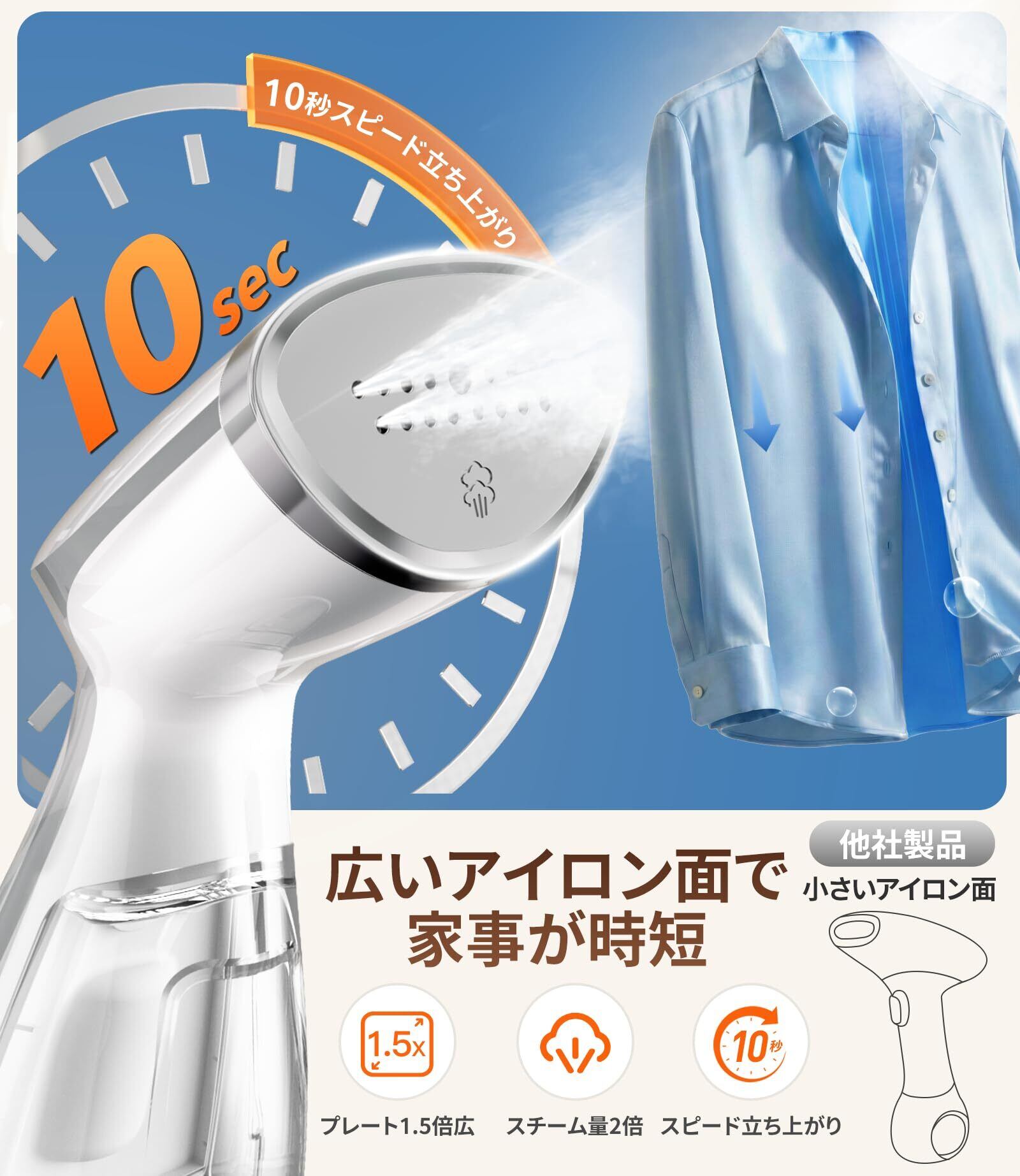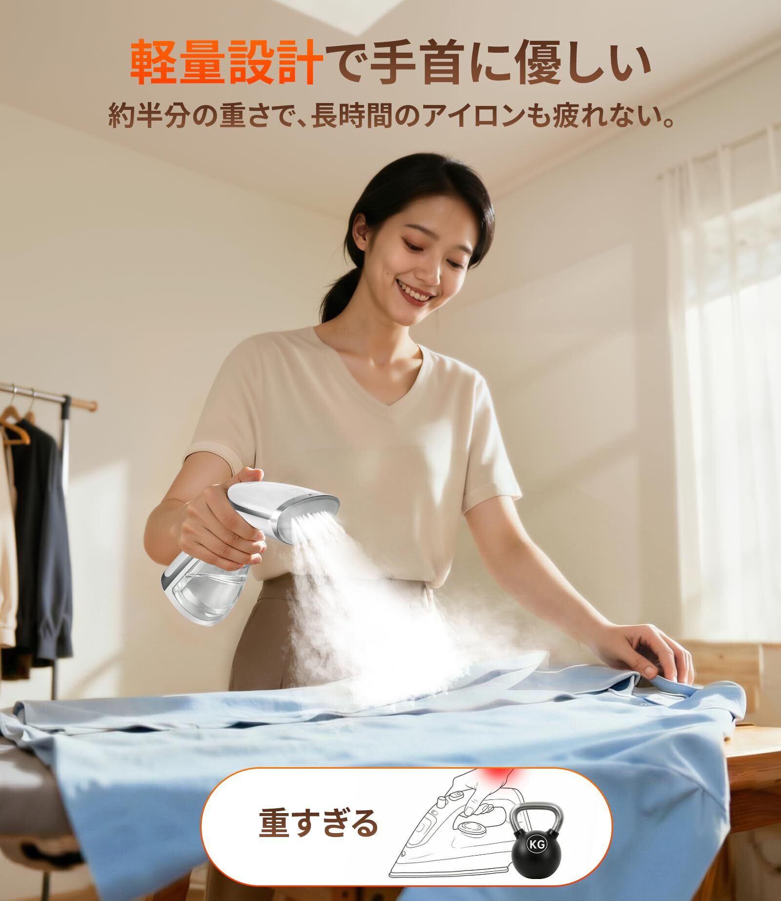 ️【超軽量&コンパクトなハンディスチーマー】軽量化設計で、長時間使っても手が疲れにくい。コンパクトで持ち運びも簡単、どこでも使える便利さを提供します。サラリーマン、家庭主婦、一人暮らしの学生や社会人に大活躍なハンディアイロンです。