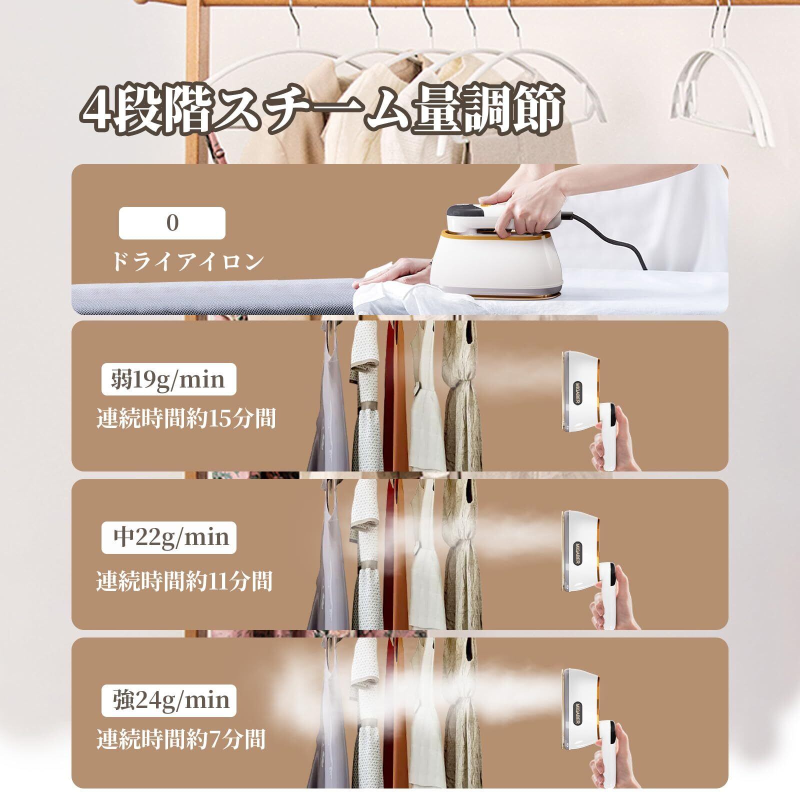 【初心者にも勧める衣類スチーマー】】このハンディアイロンはスチーム機能、プレス機能を兼備しており、アイロン台がなくてもハンガーにかけたままシワが取れます。 スチームアイロン や ドライアイロンとしては使えるため、初心者にとっては手軽に衣類ケアができます。