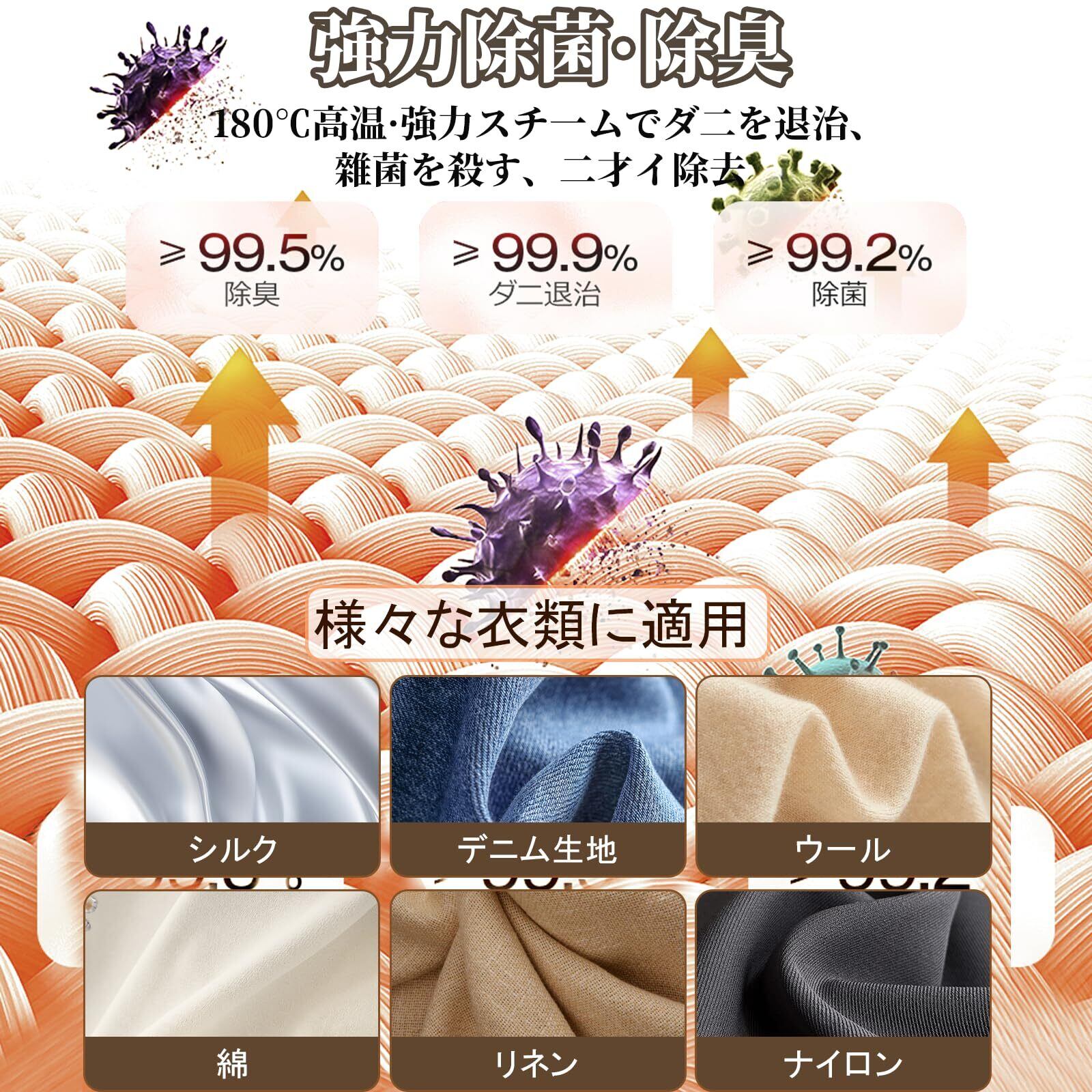 【高温除菌・脱臭】 180℃の高温スチームが布の深層まで到達し、ダニ・ウイルスが除去できます。洗えない枕や布団、ソファー、カーテン、ぬいぐるみなどの衛生管理に。梅雨時のカビ臭やペット臭の対策にも効果的です。