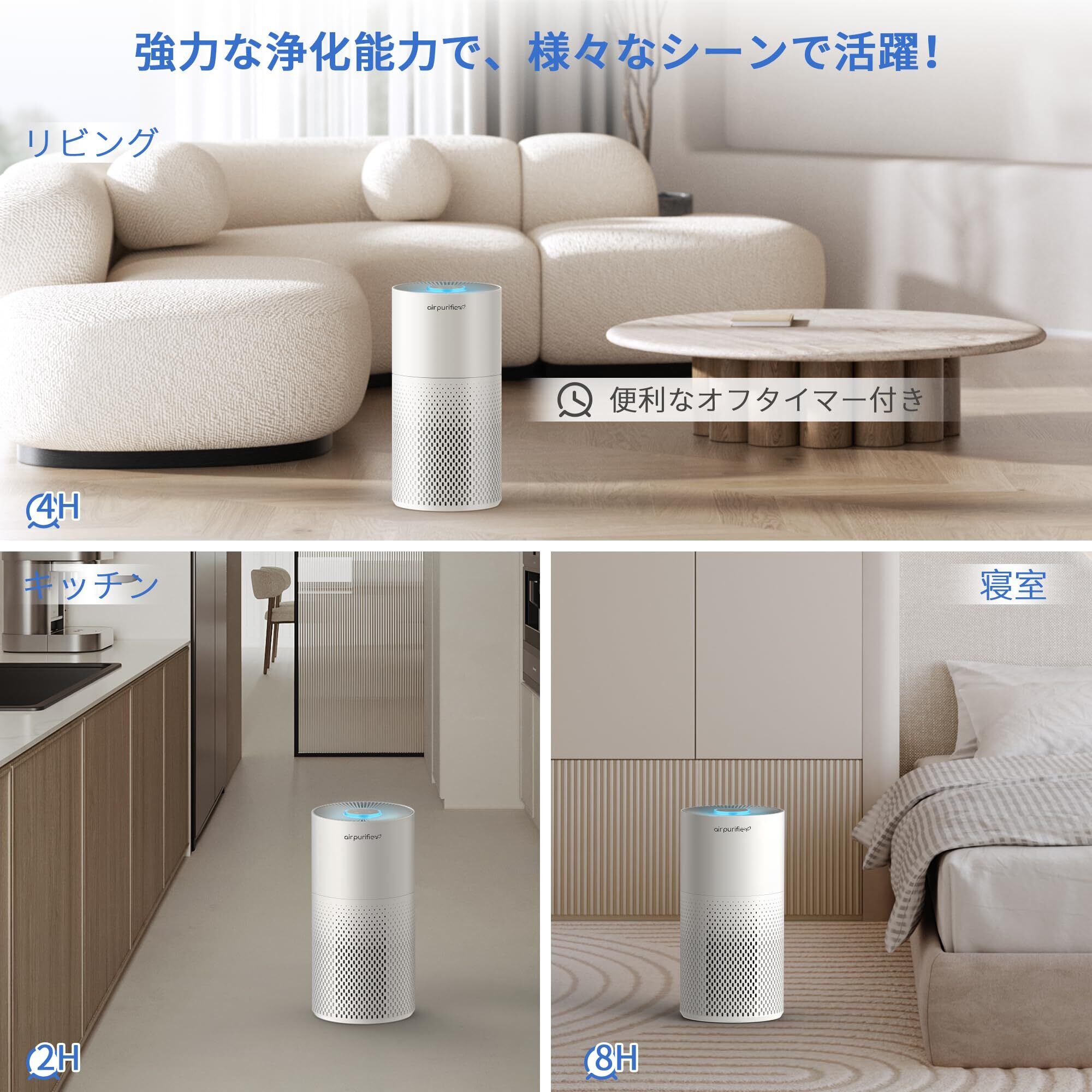 【スリープモード・お手入れ簡単】就就寝時にスリープモードに切り替えると、すべてのライトとLEDインジケーター がオフになり、安眠を妨げません。更に、静音性に優れており、赤ちゃんやお年寄りがいる家庭にもおすすめ します。洗えるフィルターというものがありますが、洗ってしまうと目詰まりや繊維が変形し新品時の性能を持 続することが困難です。本製品はフィルター交換式で、丸ごと交換可能でお手入れも簡単です