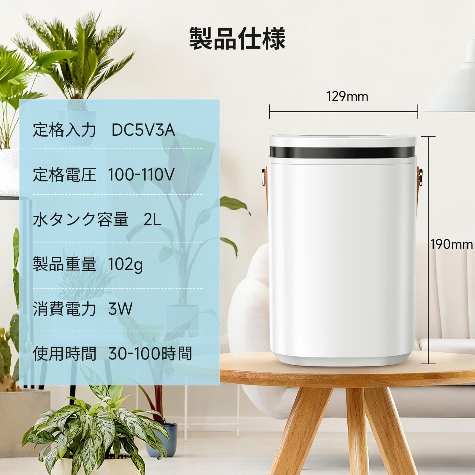 【大容量2L & 3段階ミスト】卓上で使える小型加湿器の実力。この小型でコンパクトな卓上加湿器は、大容量2Lタンクを搭載。超音波式技術により、たった1回の給水で最大30時間連続運転が可能。弱モードでは夜通しの就寝中も、強モードでは広いリビングでも、頻繁な水補充の手間を大幅カット。3段階のミスト調節で、お部屋の広さや季節に合わせて「乾燥知らず」の環境をキープ。ワンタッチ操作で、誰でも簡単に操作可能。低速:単孔ミスト、オフィスでの使用におすすめ。中速:ダブル少量ミスト、夏の冷房室での使用におすすめ。高速:ダブル大量ミスト、乾燥した秋冬の使用におすすめ。
