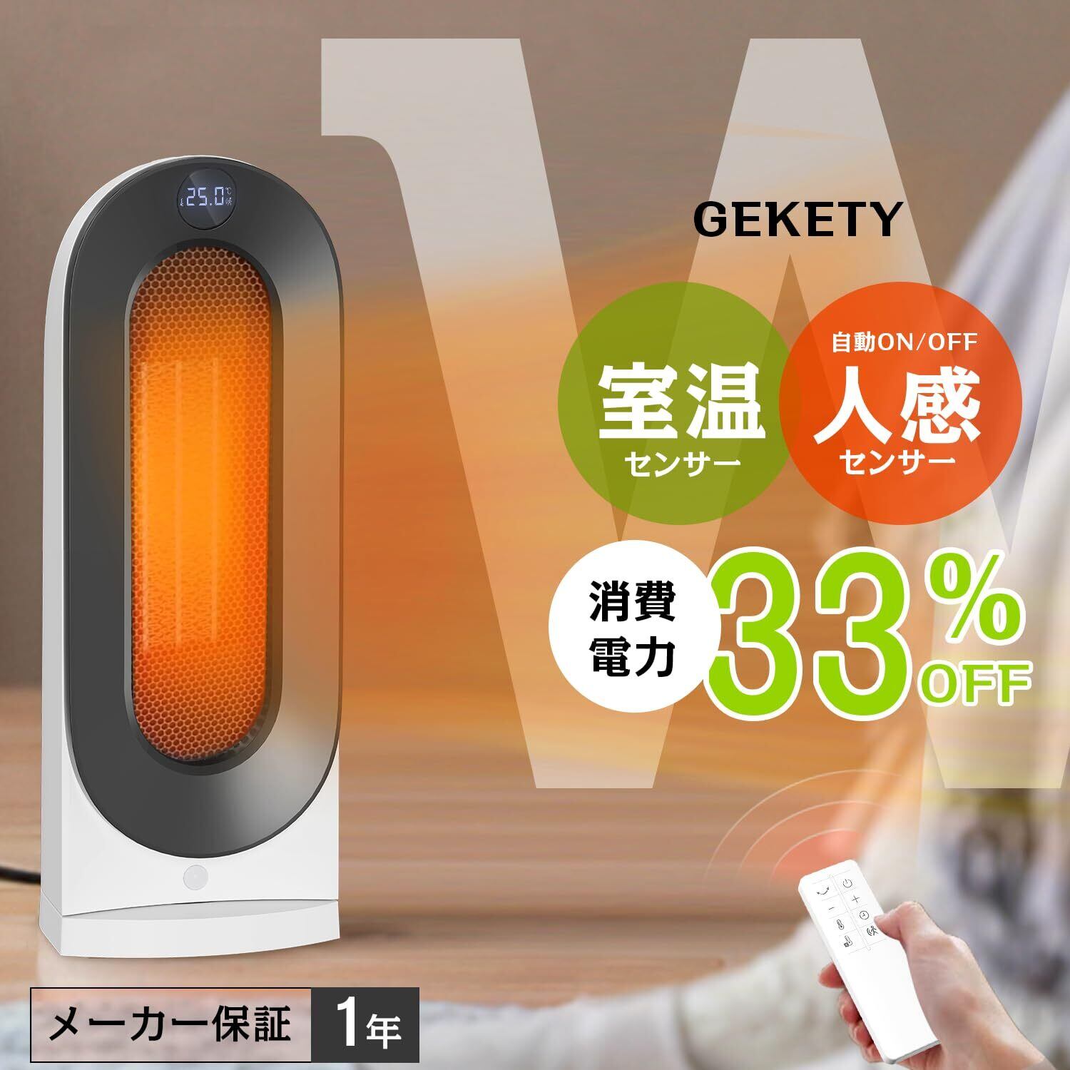 【人感センサー&室温センサーでムダなく、暖かい】人感・室温Wセンサーを搭載しており、快適さと節電を両立するセラミックヒーター。人感センサーが人の動きを感知して自動で運転ON/OFFするため、「うっかり消し忘れ」を防止し、無駄な電力をカット。在宅ワークや脱衣所など、人が出入りする空間に最適。ECO温度センサーモードでは15〜35度まで1度刻みで細かく温度調節が可能で、無駄な電力を抑えつつ快適温度をキープ。暖かさと経済性を両立し、冬の光熱費の悩みを解消する賢いヒーター。