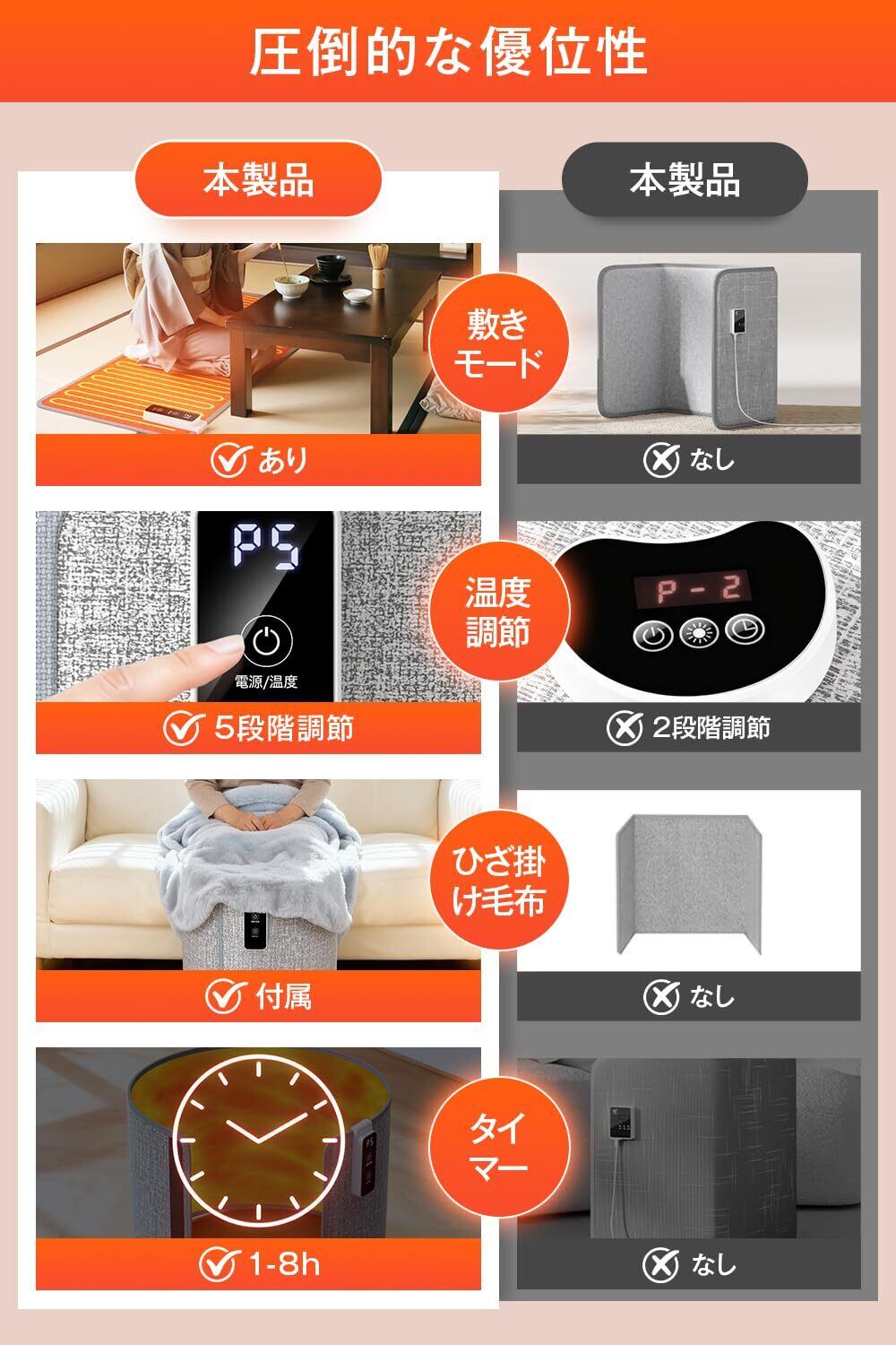 ️【デスク下をまるでこたつ空間に。快適な足温器ヒーター】寒い冬のデスクワークや受験勉強にぴったりな足温器タイプのパネルヒーター。平置きモードで足元全体を包み込み、遠赤外線ヒーターが優しく温めるため乾燥しにくく、長時間の使用も快適。ひざ掛けと併用すれば、こたつのようなポカポカ空間に早変わり。PSE認証済の安全設計で、過熱防止・タイマー機能付き。使わない時は丸めて収納できるコンパクト設計。リビング・オフィス・勉強部屋など、どこでも活躍する電気パネルヒーターです。1時間あたり約4円の省エネ設計で経済的。おしゃれなデザインで、冬のギフトやプレゼントにも最適なホットカーペット型パネルヒーターです。