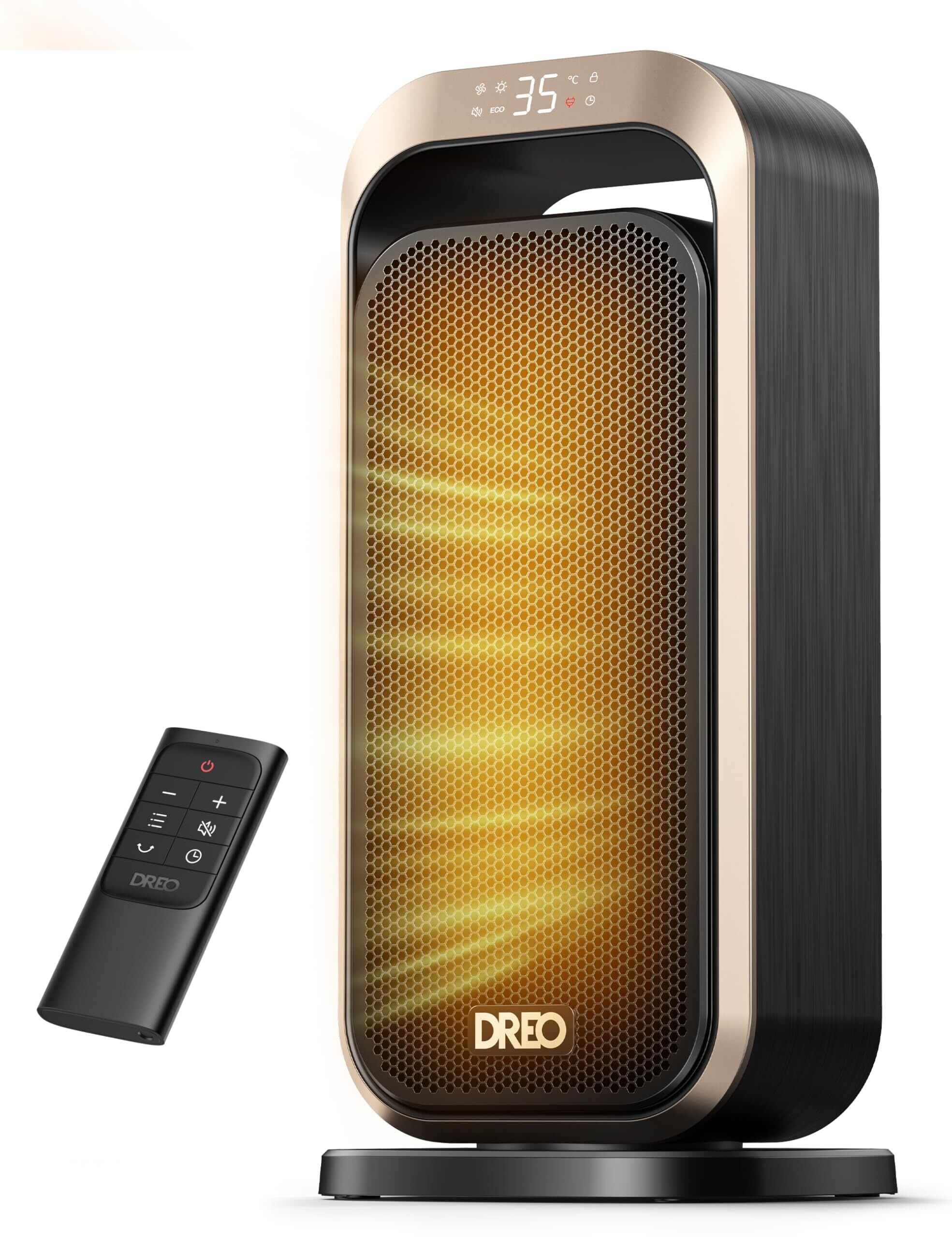 DREO (ドレオ) セラミック ファンヒーター 【コンパクト・持ち運びやすい 】 40%節電 暖房器具 1200W~11.5畳/1000W/800W 温度調節5~35℃ ECO省エネ 電気代安い 8つ安全機能 LED 70°首振り 12Hタイマー 脱衣所 足元 手元 オフィス リビング デスク用 幅・奥行17.2×高さ37.2cm ゴールド