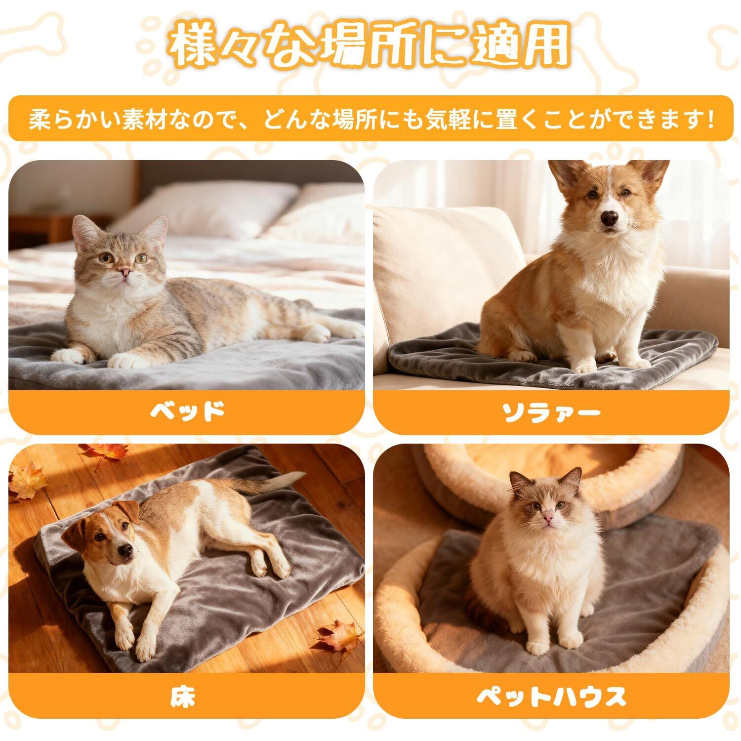 【いろんな場所で活躍・安心】このホットマットは床だけではなく、ペットベッド、ソファやペットケージなどの室内での使用をお勧めします。ペットちゃんもポカポカで暖まり快適に寒い冬を過ごせます!一年間付き、お買い上げ日から1年以内の初期不良、或いは故障、破損、他の不具合発生した場合でもお気軽に弊店までご連絡ください、24時間以内に対応をさせて頂きますのでご安心ください。