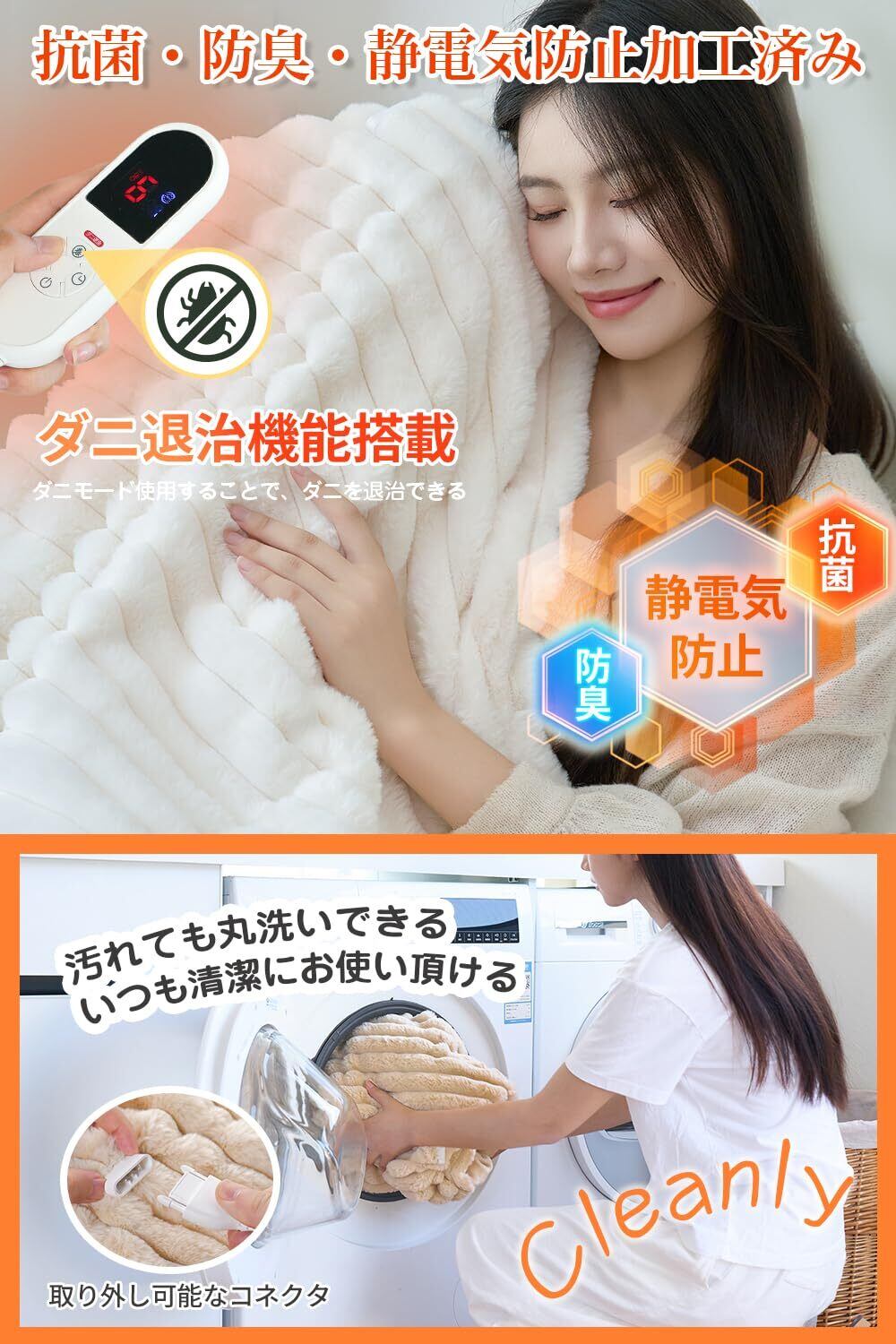 【抗菌消臭&静電気抑制&洗えるデザイン】生地には抗菌防臭加工を施し、細菌の繁殖や不快なにおいの発生を抑えます。また、静電気防止加工付きで静電気も抑制し、パチパチする不快感を軽減します。さらに、ダニ退治機能搭載、高温でダニを99%以上死滅させ、清潔で安心にお使いいただけます。そして、自宅でまるごと洗える電気毛布だから、より衛生的かつ便利に使えます。