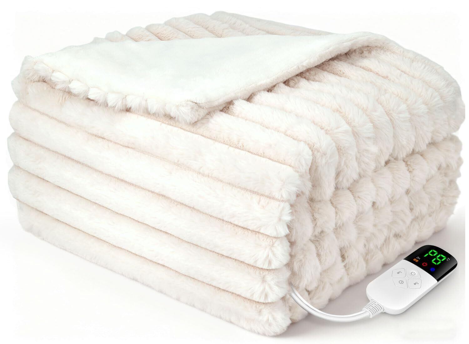 電気毛布 掛け敷き兼用 188×130cm【極上の肌触り&ラビットファー調+フランネル】電気ブランケット 電気ひざ掛け 3分速暖 恒温加熱 8段階温度調整 4段階切タイマー ダニ退治 厚手生地 ふわふわ 柔らかく 暖房器具 省エネ 自動電源オフ 過熱保護 丸洗い可 毛玉なし 頭寒足熱 防寒対策 防臭 抗菌 肩掛け 膝掛け PSE認証済 ベージュ