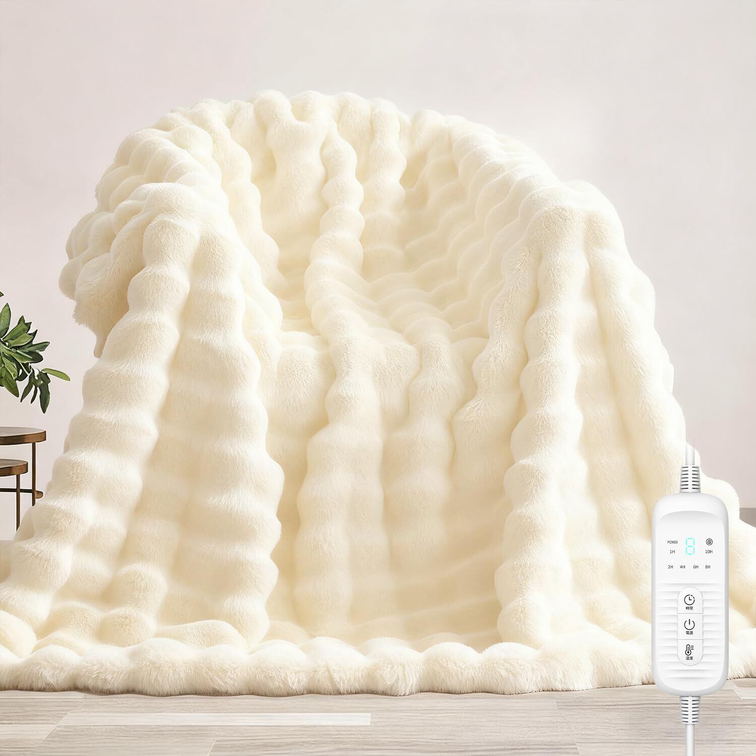 【新春セール】電気毛布 掛け 敷き 掛け兼用 厚手【表面兎毛調+裏面フランネル素材】ふわとろ 速暖 電気ブランケット 日本製ヒーター ダニ退治 8段階温度 10時間オフタイマー機能付き ラビットファー コットン 超柔らかい 膝掛け 加熱毛布 PSE認証済み[日本国内ブランド正規品](ホワイト)