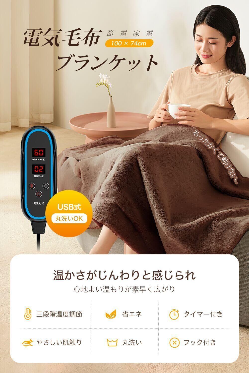 【新春セール】電気毛布 電気ひざ掛け 【3段階温度調節 LEDディスプレイ表示】 電気ブランケット 掛け 敷き 兼用 タイマー 自動オフ ヒーター付き ひざ掛け 肩掛け USBブランケット 洗える 暖房器具 防寒対策 大判 省エネ キャンプ ソロキャンプ 車中泊 テント泊 アウトドア オフィス (茶色 本体のみ)