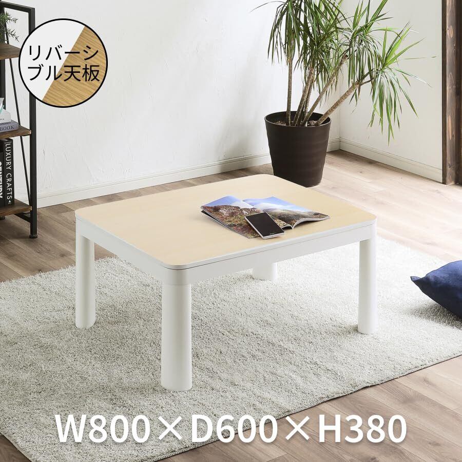 【在庫セール】リバーシブル天板 カジュアルこたつ テーブル本体, 100万台以上販売実績 (布団なし, 天板:ホワイト×ナチュラル, 80×60)