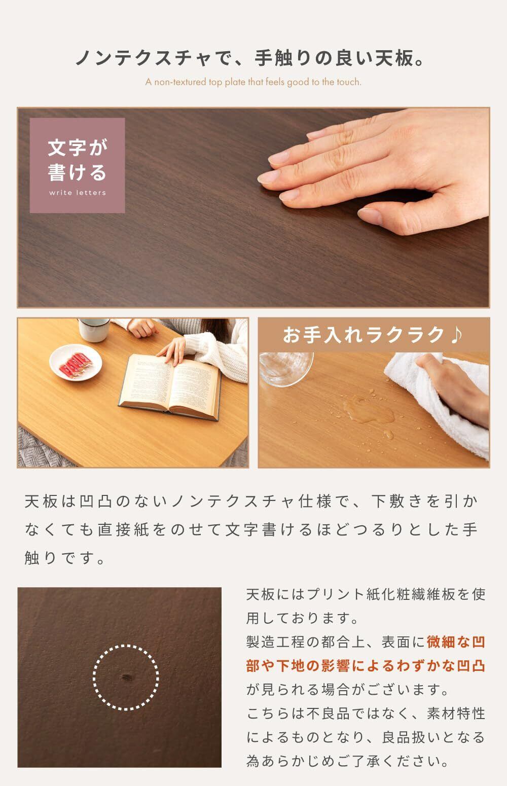 材質:プリント紙化粧繊維板/天然木(ラバーウッド)/ウレタン塗装/石英管ヒーター/中間スイッチ