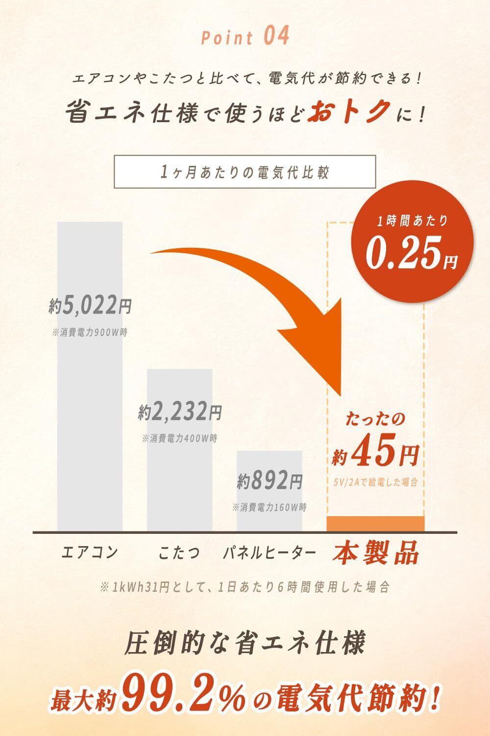 【素材】ポリエステル+発熱体【サイズ】32×25×30cm、重量:約520g【仕様】3段階温度調節:約35-40-45℃/タイマー機能:30、45、60分設定可能/USB給電式/発熱体を取り外すと洗濯可能