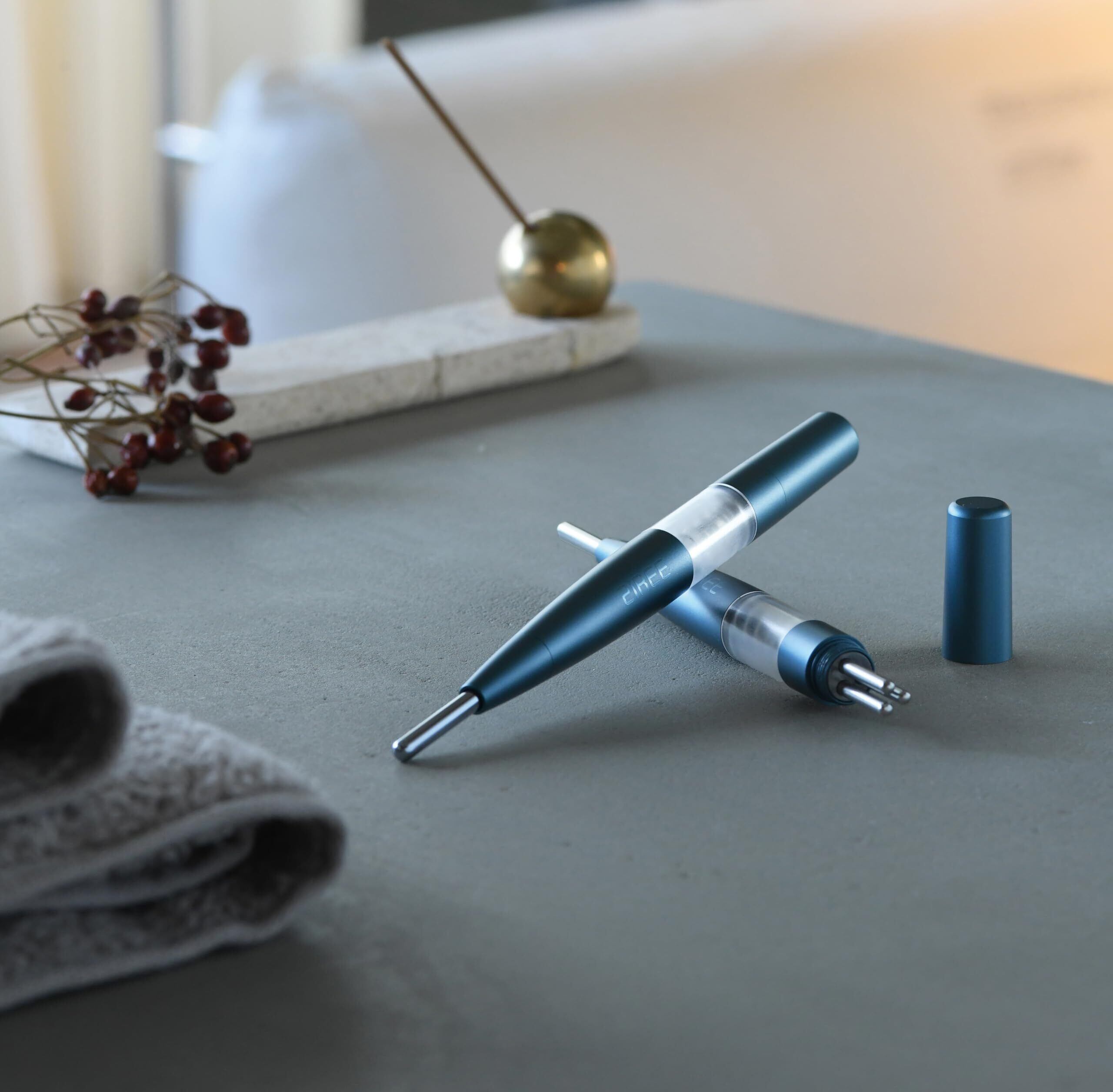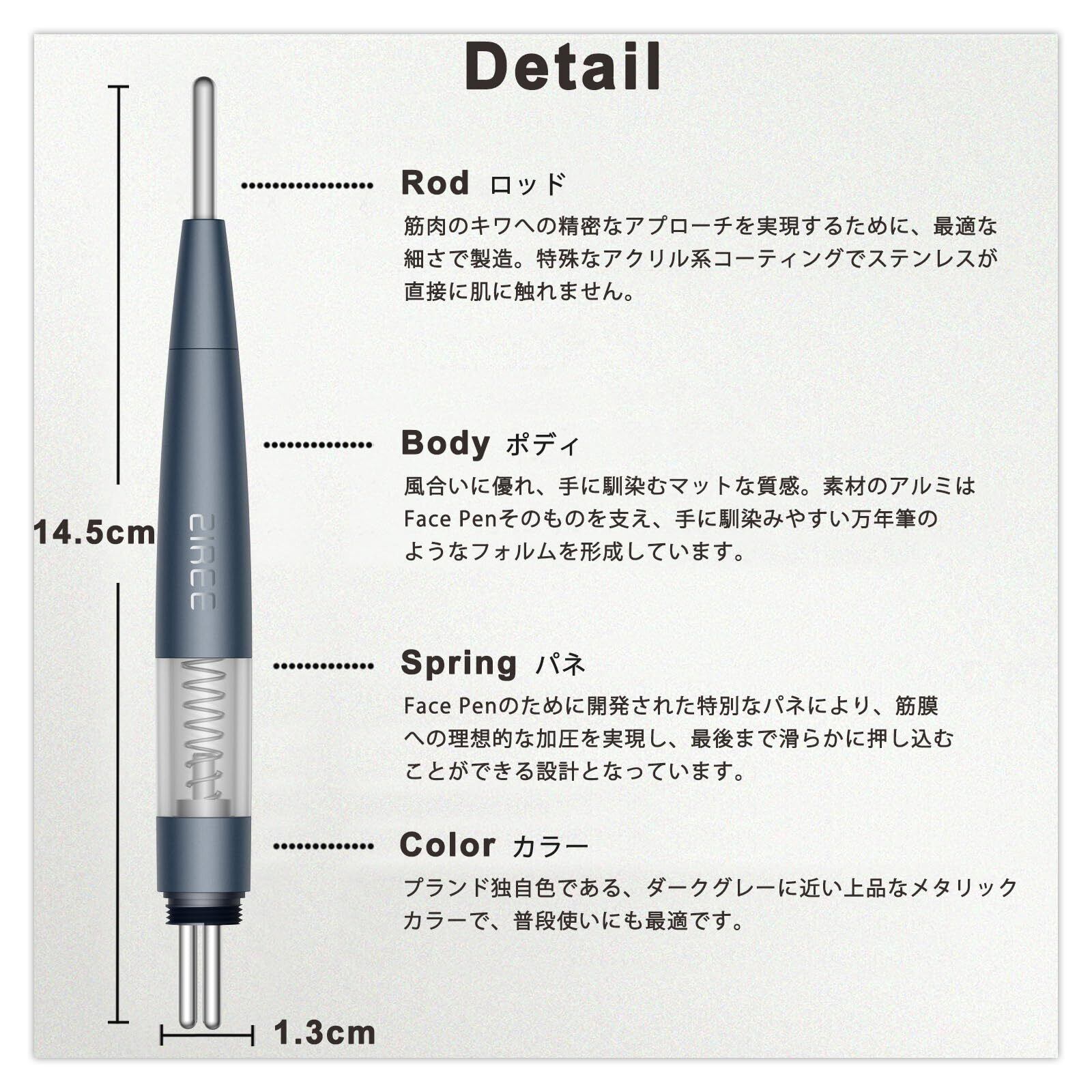 【FaceMassagerPenを選ぶ】 表情筋をしっかり使わないと、筋膜が癒着し、さまざまなエイジ ングサインの原因になります。しかし、筋膜リリースは深層の筋膜に働きか ける必要があり、セルフケアだけでは限界があります。筋膜の癒着をほぐすためには、筋膜に対して適度な圧を加える必要があります。しかし、筋膜に適切に加圧することはとても難しく、プロの技術が必要です。その技術をお家で再現できるようにしたのがこの「Face-Pusher」。自分の手で適切に圧力を調節出来るので、ピンポイントに深部まで圧力を加え、お顔のコリに適切にアプローチします。