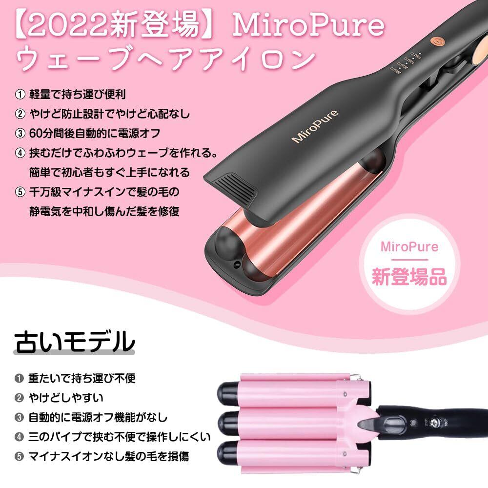 【在庫セール】MiroPure ヘアアイロン カール ウェーブアイロン 26㎜ 挟むだけで可愛い カールアイロン 実現 160℃~220℃ 千万級マイナスイオン吹出 やけど防止 初心者向けカールアイロン プレゼントも最適 海外対応 PSE認証済 日本語取扱説明書付き ブラック