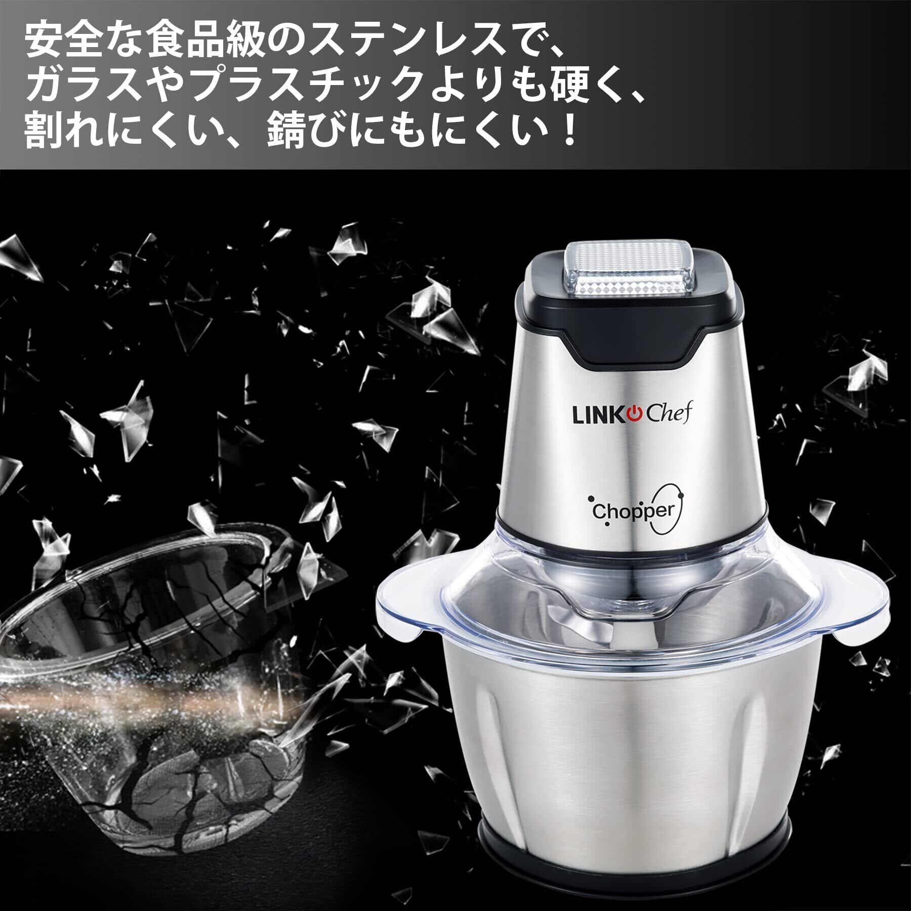 【新着商品】フードプロセッサー LINKChef 250W フードチョッパー ハイパワー 肉挽き 野菜みじん切り 4枚刃カッター 刻む・潰す・砕く・混ぜる 一台多役 1.2L容量 ステンレス鋼 グレー 水洗い可能 過熱保護 操作簡単 家庭用
