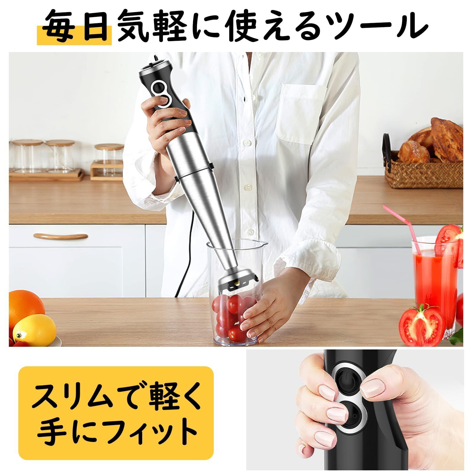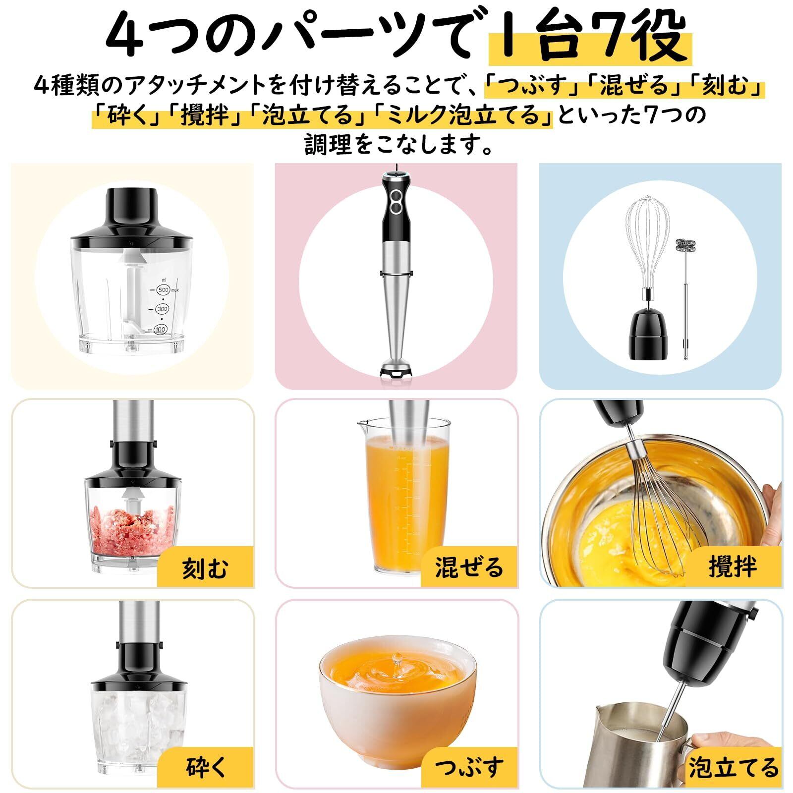 【最新デザイン・チタンコーティング刃】ハンドブレンダー 離乳食 ブレンダー 1台7役 1000W 電動 ミキサー ハンドミキサー 20000回/分【鍋保護・キズ防止設計・耐腐食性】電動 ミキサー ハンドミキサー 氷も砕ける 泡立て器 ジューサー フードプロセッサー 洗いやすい 収納スタンド付き おしゃれ 人気 キッチン家電 (ハンドブレンダー[チョッパー・泡立て器付き])