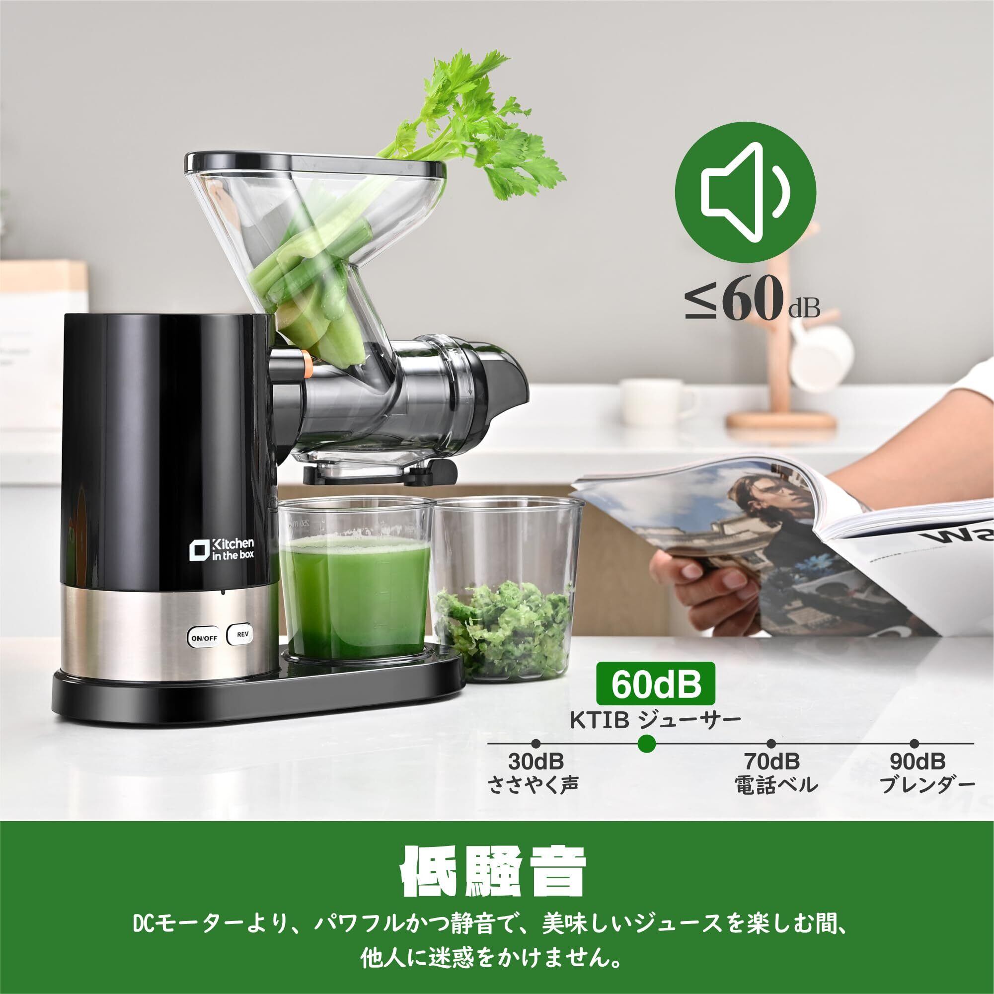 Kitchen in the box スロージューサー BPAフリー 低速 コールドプレスジューサー 静音 洗いやすい ミキサー 高い搾汁率 取り付け簡単 搾りカス分離 フルーツ 野菜
